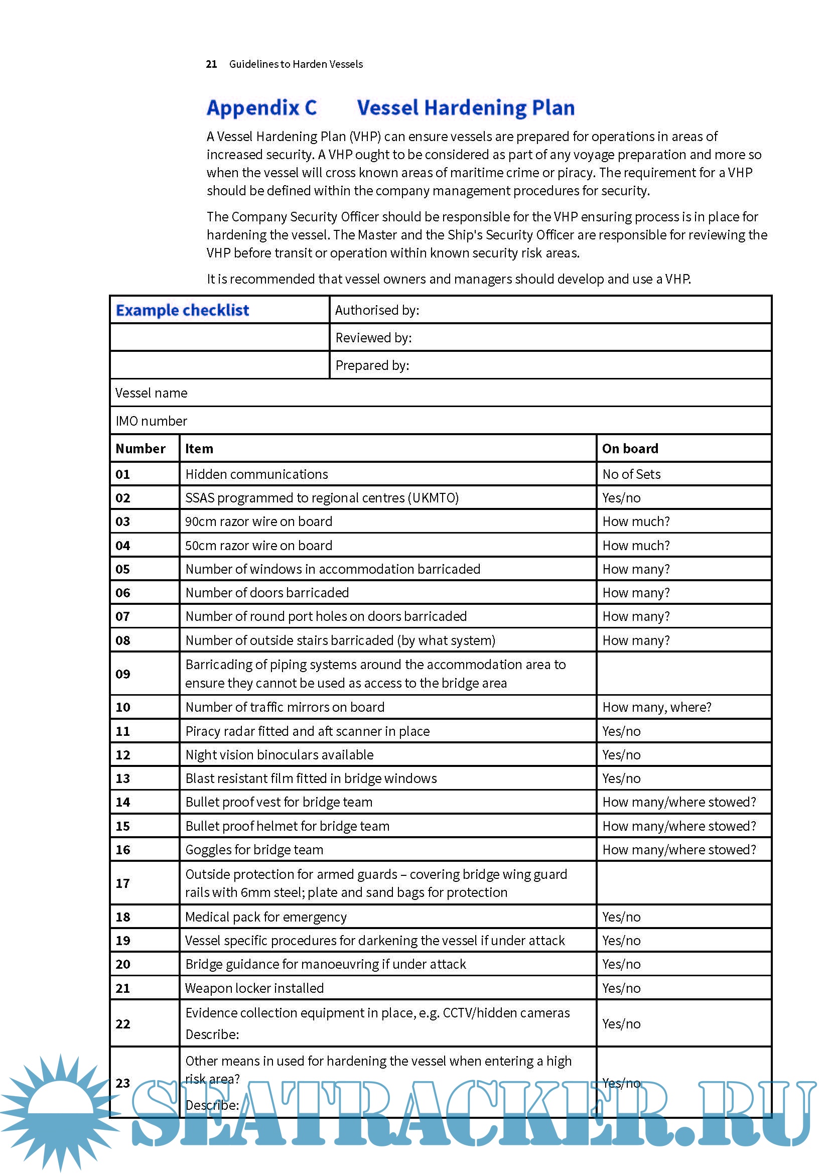 Description: This information paper brings together best practice both on board a vessel and for owners,