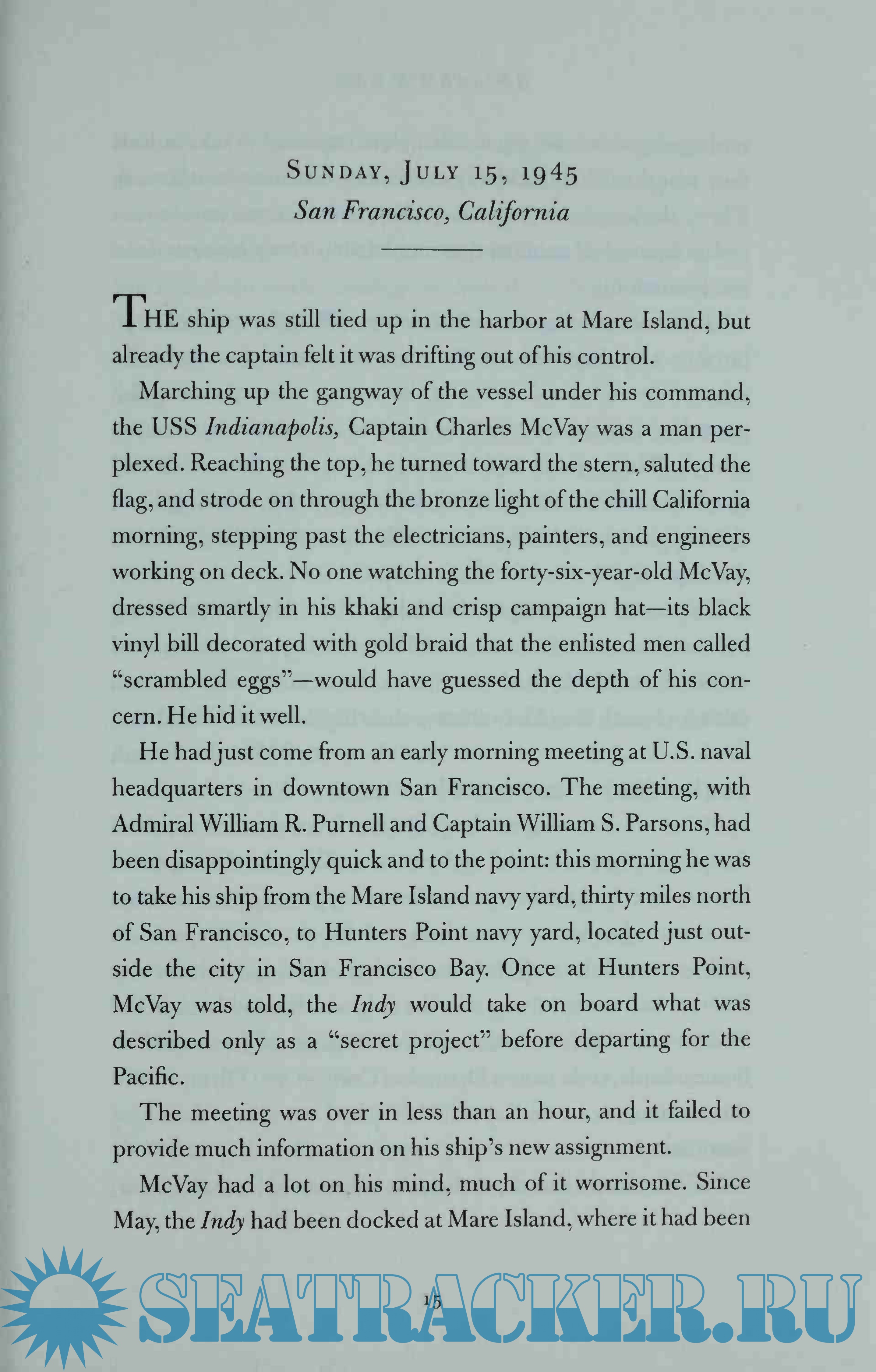 Description: On July 30, 1945, after completing a top secret mission to deliver parts of