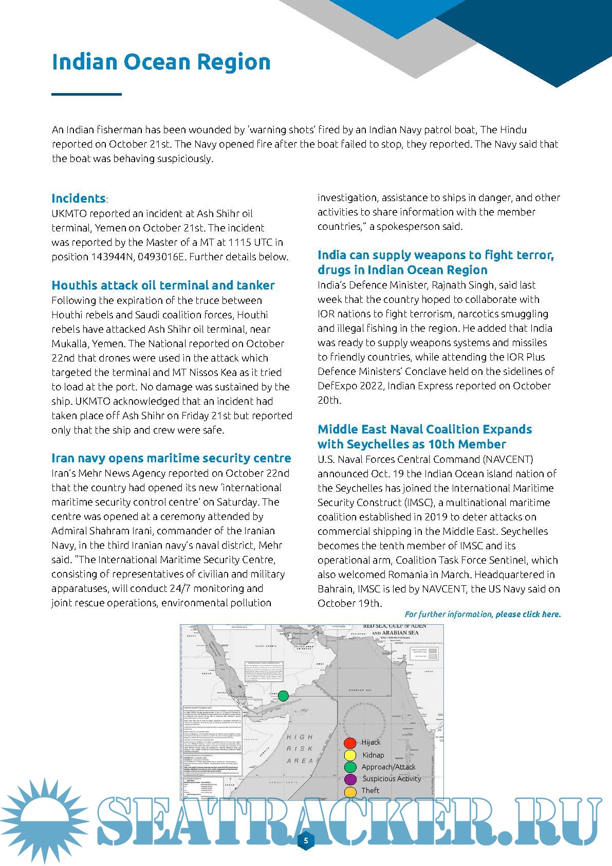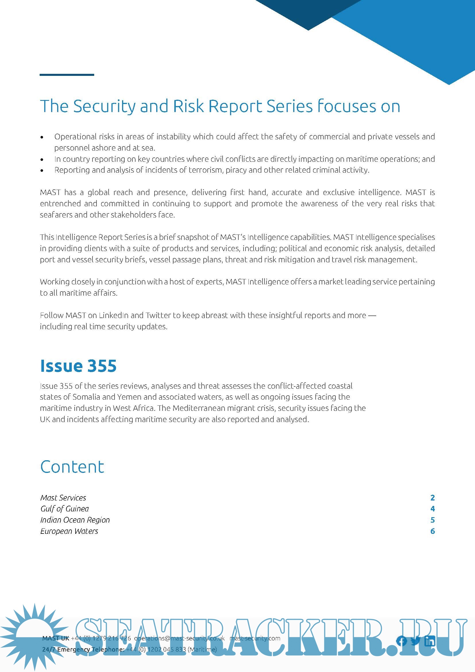 Year: 2022 Language: english Author: Maritime Asset Security and Training (MAST) Genre: Guide Format: PDF Quality: eBook Pages count: 14 Description: This report is intended to provide general information about maritime intelligence topics but does not provide individual advice and the creators assume no liability for the accuracy, completeness or adequacy of any information contained herein, or through links you will find in it. This Intelligence Report Series is a brief snapshot of MAST’s Intelligence capabilities. MAST Intelligence specialises in providing clients with a suite of products and services, including; political and economic risk analysis, detailed port and vessel security briefs, vessel passage plans, threat and risk mitigation and travel risk management. This Intelligence Report analyses and threat assesses the conflict-affected coastal states of Somalia and Yemen and associated waters, as well as ongoing issues facing the maritime industry in West Africa. The Mediterranean migrant crisis, security issues facing the UK and incidents affecting maritime security are also reported and analysed. Issue no.355 dated October, 26 2022