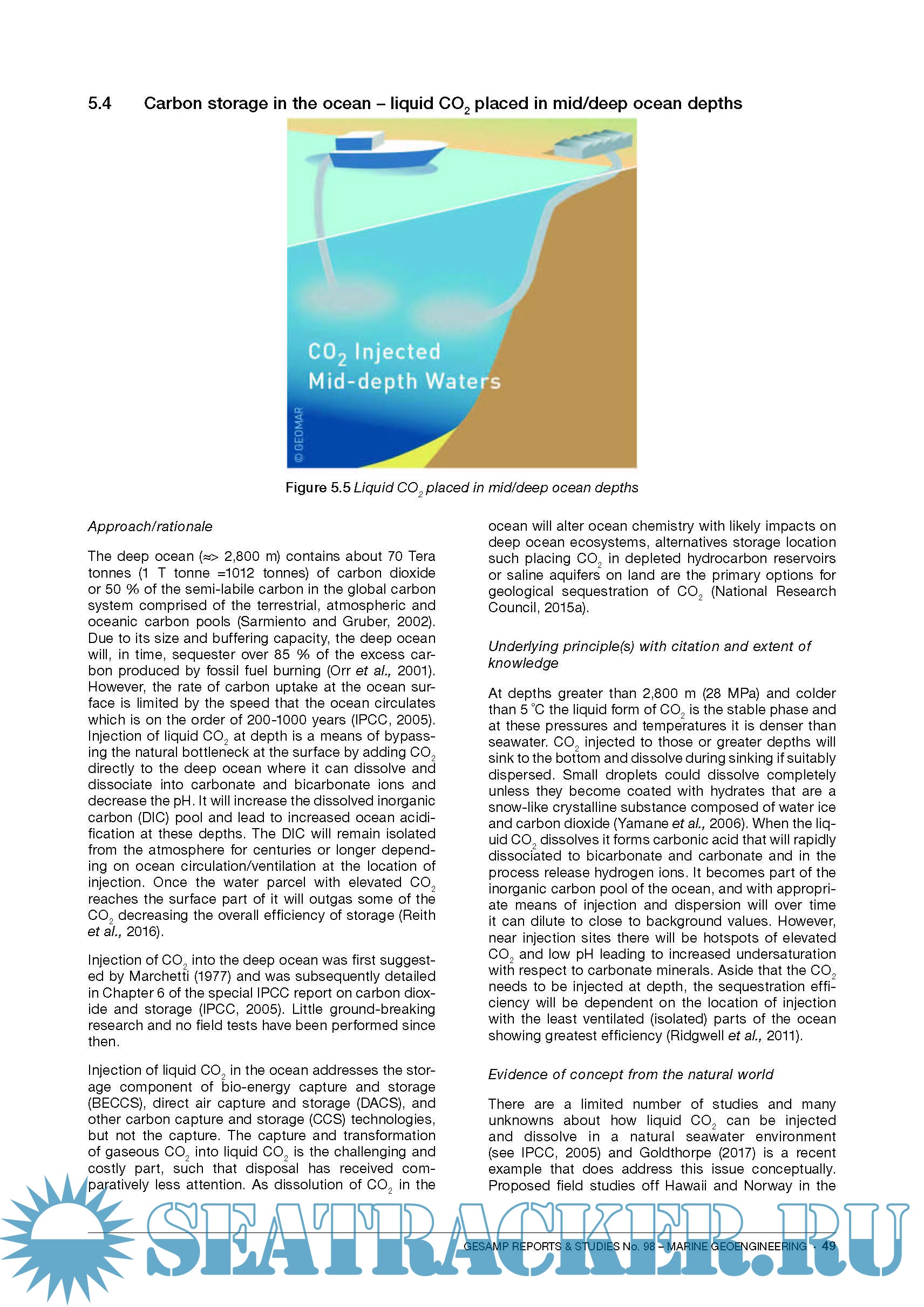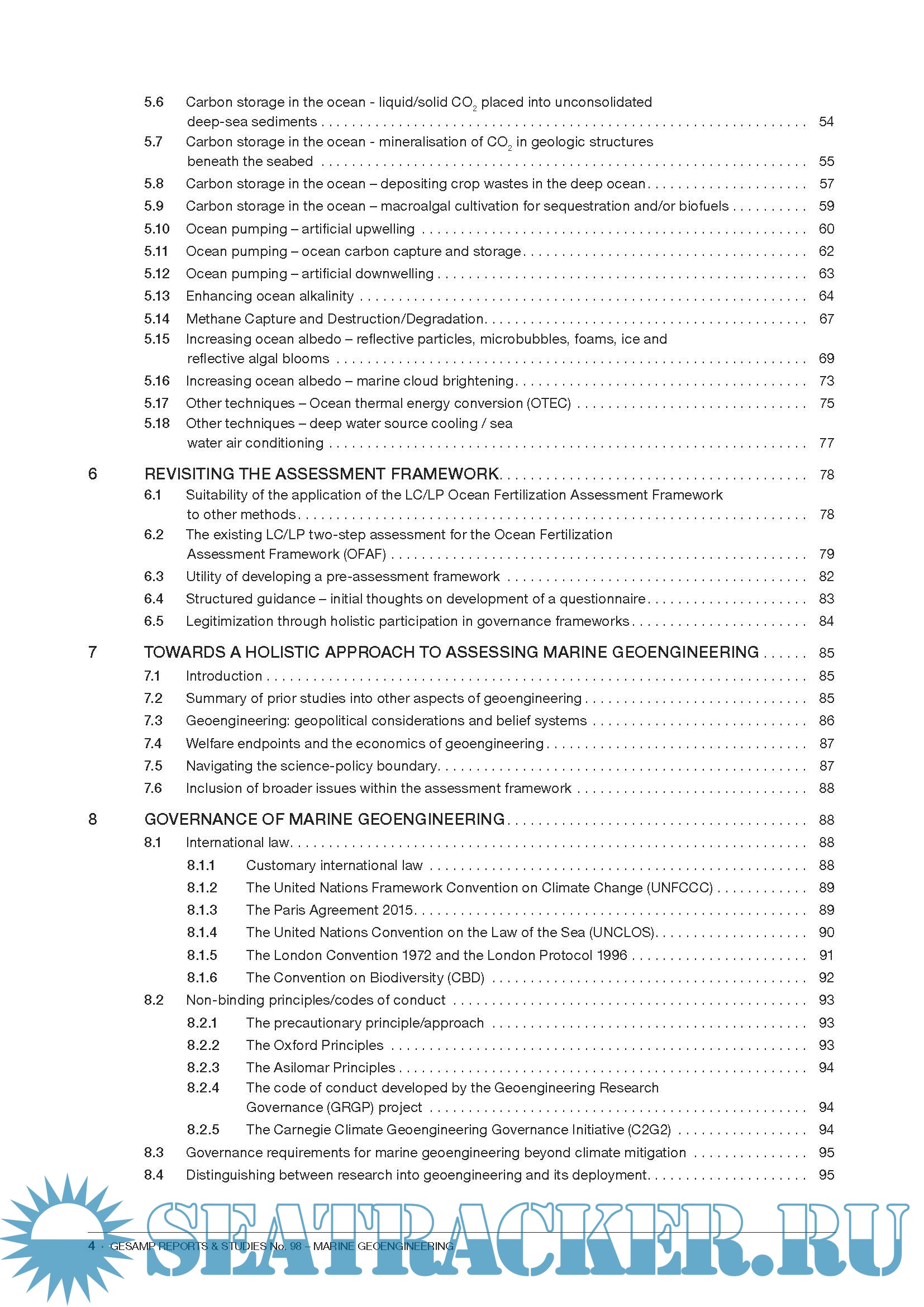 Year: 2020 Language: english Author: GESAMP Genre: Research papers Format: PDF Quality: eBook Pages count: 145 Description: This report comprehensively examines a wide range o marine geoengineering techniques to remove carbon dioxide from the atmosphere or boost the reflection of incoming solar radiation to space (albedo modification) or in some cases both. Further, the report recommends a) that a coordinated framework for proposing marine geoengineering activities, submitting supporting evidence and integrating independent expert assessment must be developed and b) that a greater expertise on wider societal issues is sought with the aim to establish a knowledge base and provide a subsequent analysis of the major gaps in socio-economics and geopolitics.