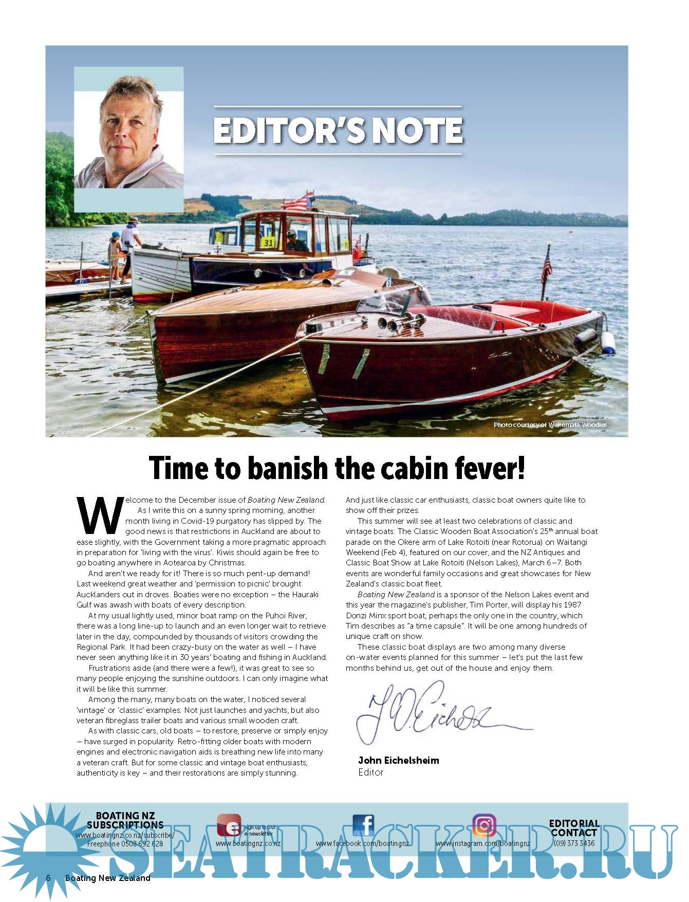 Year: 2021 Language: english Author: John Eichelsheim - Editor Genre: Periodical (magazine) Publisher: Tim Porter Edition: December 2021 Format: PDF Quality: Photo of pages Pages count: 164 Description: Boating NZ is New Zealand's premier marine title devoted to putting its readers behind the wheel of the latest trailerboats, yachts and launches to hit the market. It inspires with practical content and cruising adventures, leads the fleet with its racing coverage and is on the pulse of the latest maritime news and innovation.