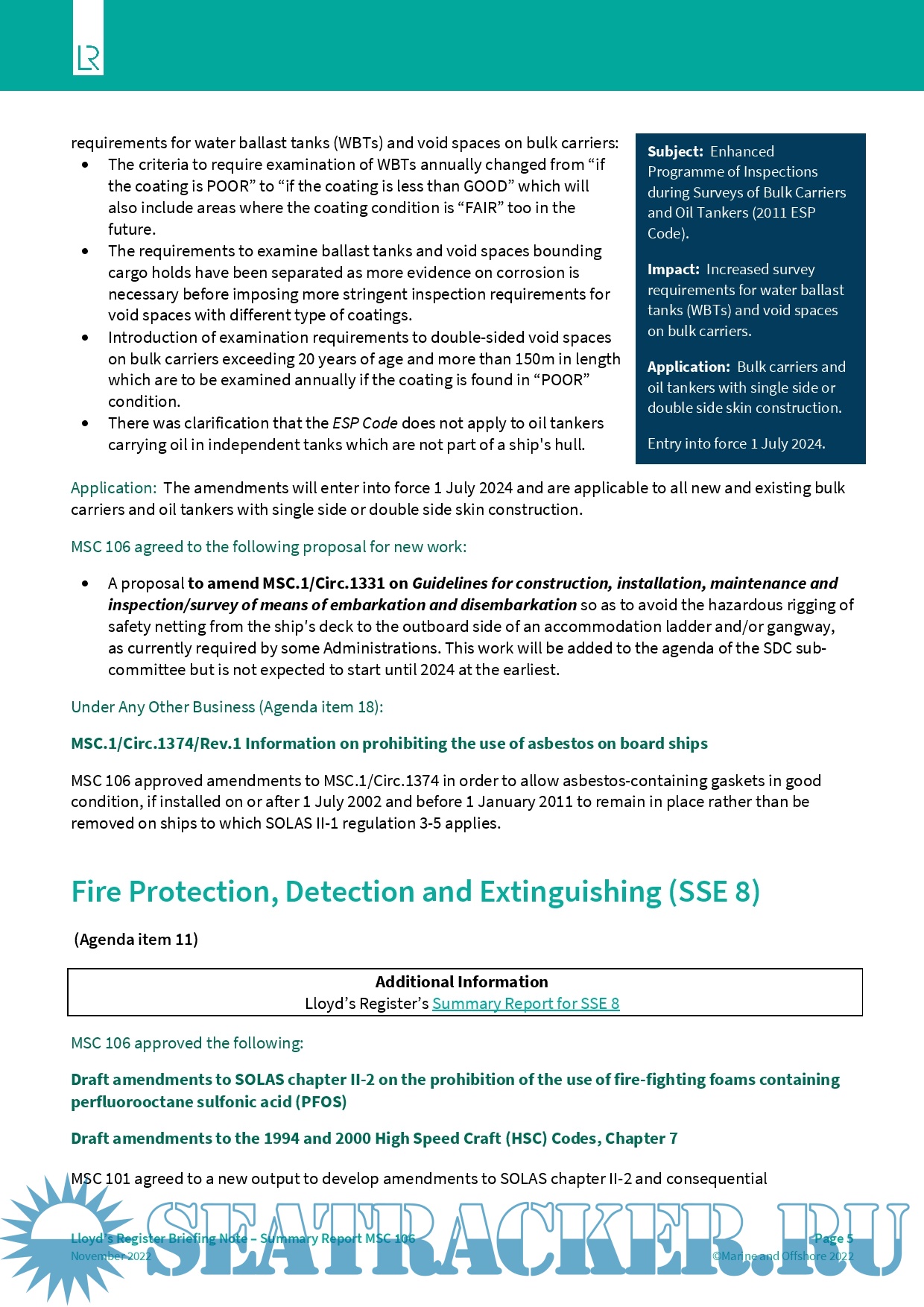 LR Summary Report for the IMO Ship Systems and Equipment Sub-Committee (SSE 9) - Lloyd's…