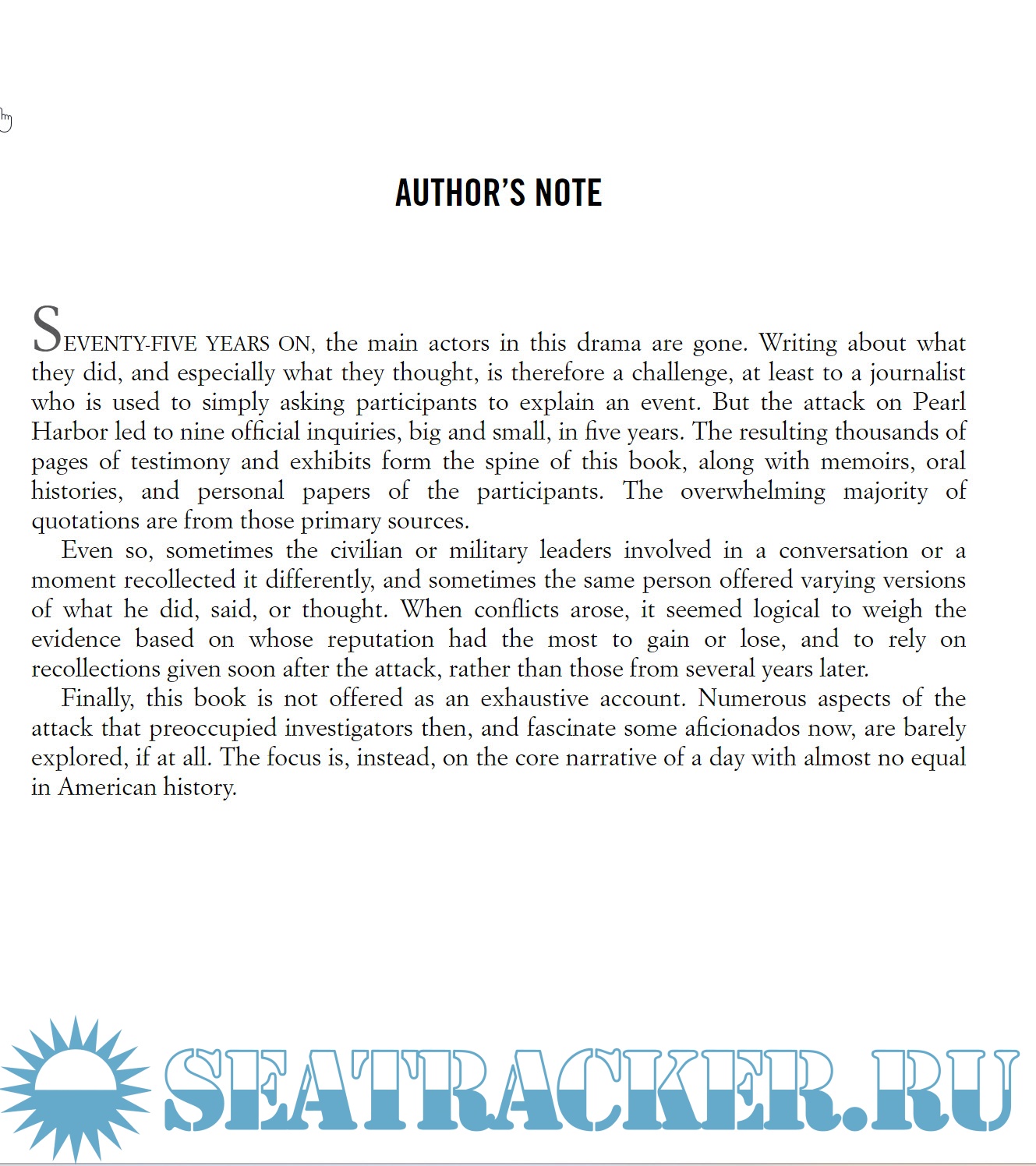 Year: 2016 Language: english Author: Steve Twomey Genre: Textbook Publisher: Simon & Schuster Edition: First ISBN: 978-1476776484 Format: EPUB Quality: eBook Pages count: 385 Description: In this “riveting” (Los Angeles Times) account of the days leading up to the attack on Pearl Harbor, Pulitzer Prize-winning journalist Steve Twomey “infuses a well-known story with suspense” (The New York Times Book Review), offering a poignant new perspective on the most infamous day in American history. In Washington, DC, in late November 1941, admirals composed the most ominous message in Navy history to warn Hawaii of possible danger—but they wrote it too vaguely. They thought precautions were being taken, but never checked to be sure. In a small office at Pearl Harbor, overlooking the battleships, the commander of the Pacific Fleet tried to assess whether the threat was real. His intelligence had lost track of Japan’s biggest aircraft carriers, but assumed they were resting in a port far away. Besides, the admiral thought Pearl was too shallow for torpedoes; he never even put up a barrier. As he fretted, a Japanese spy was counting warships in the harbor and reporting to Tokyo. There were false assumptions and racist ones, misunderstandings, infighting, and clashes between egos. Through remarkable characters and impeccable details, Pulitzer Prize–winner Steve Twomey shows how careless decisions and blinkered beliefs gave birth to colossal failure. But he tells the story with compassion and a wise understanding of why people—even smart, experienced, talented people—look down at their feet when they should be scanning the sky. The brilliance of Countdown to Pearl Harbor is in its elegant prose and taut focus. “Even though readers already know the ending, they’ll hold their collective breath, as if they’re watching a rerun of an Alfred Hitchcock classic” (St. Louis Post-Dispatch). Additional info: About the Author Steve Twomey began his career in journalism as a copyboy at the Chicago Tribune when he was in high school. After graduating from Northwestern University, he began a fourteen-year career at The Philadelphia Inquirer, during which he won the Pulitzer Prize for feature writing, and then worked at The Washington Post for the next thirteen years. More recently, he has written for Smithsonian and other magazines and has taught narrative writing at the graduate schools of New York University and the City University of New York. The ghostwriter of What I Learned When I Almost Died and author of Countdown to Pearl Harbor, Twomey lives in Montclair, New Jersey, with his wife, Kathleen Carroll.