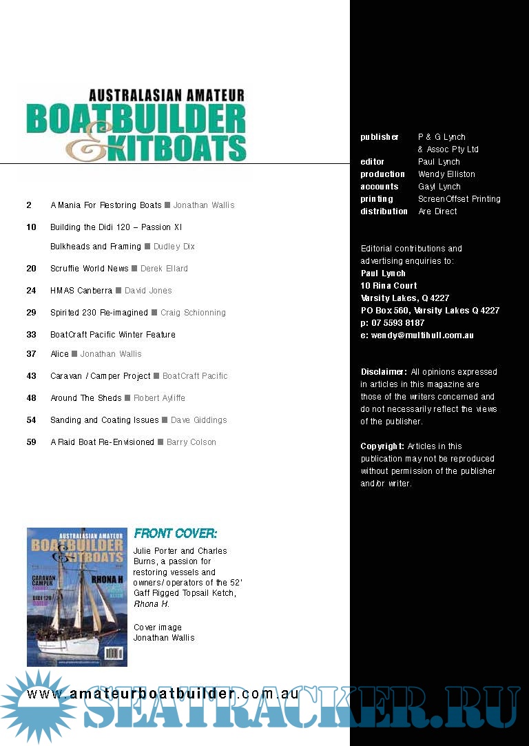 Description: Australialian Amateur Boat Builder Magazine is an Australian-based specialist publication devoted exclusively to Amateur Boat Building enthusiasts