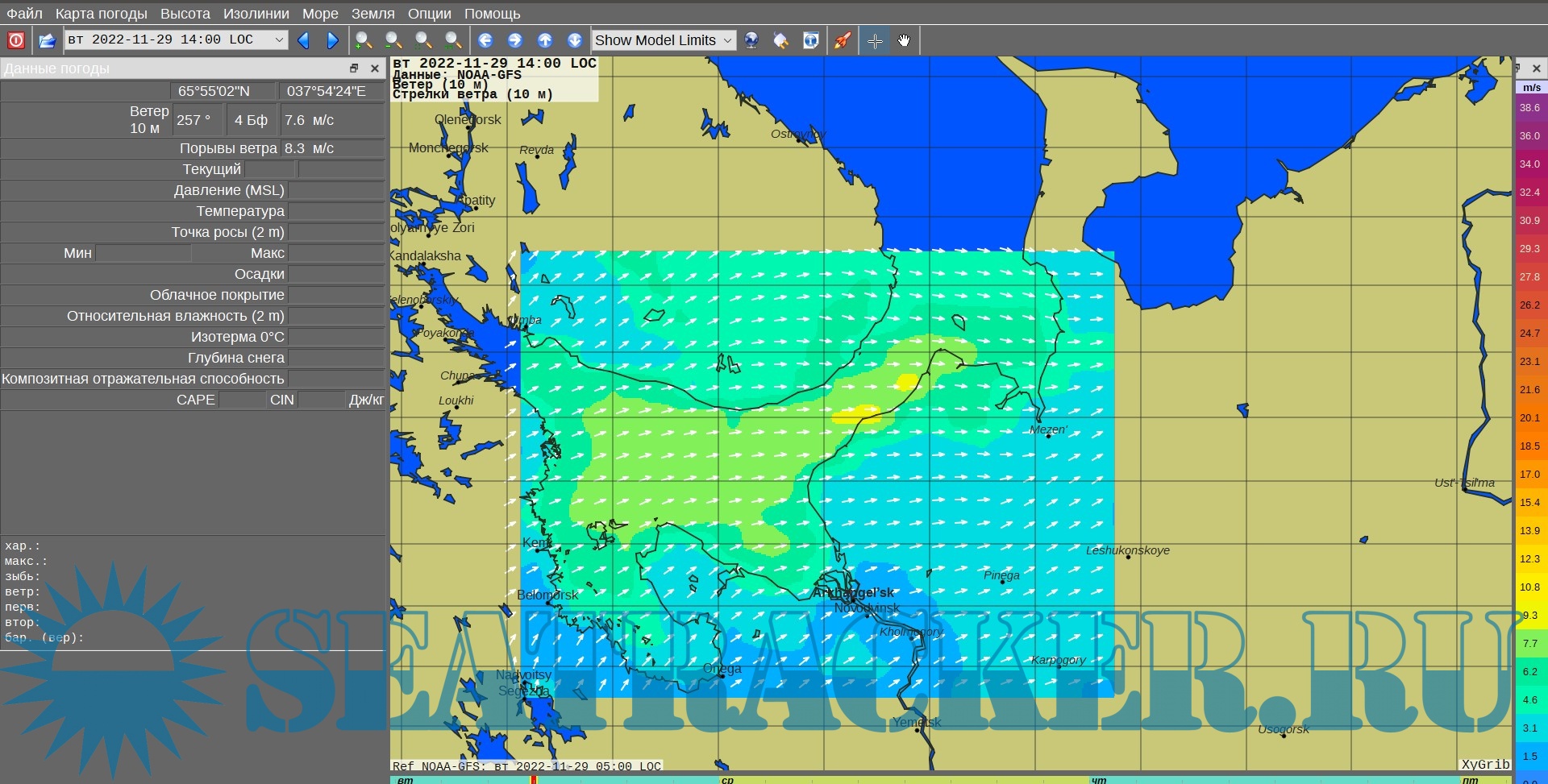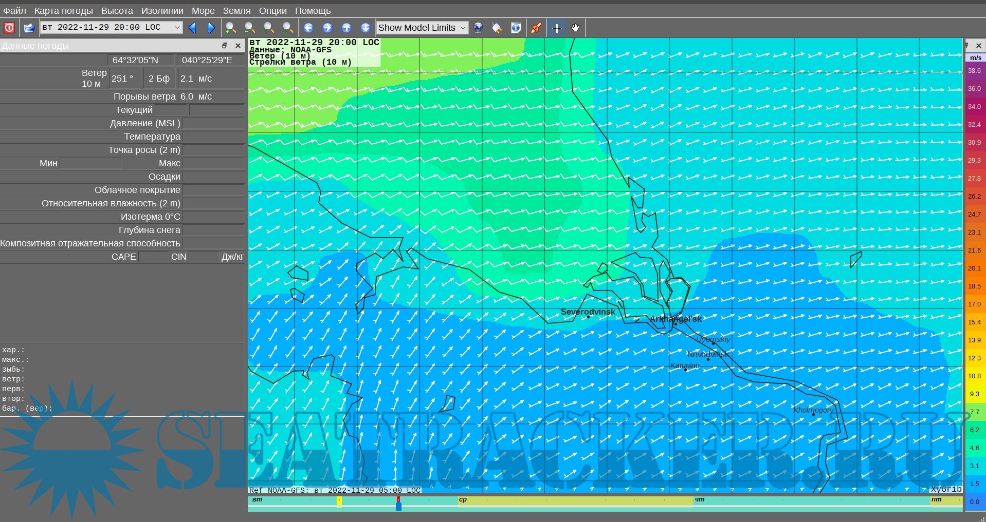 Доп. информация: Работает в России без VPN, в отличии от zyGrib. Интерфейс идентичен zyGrib.