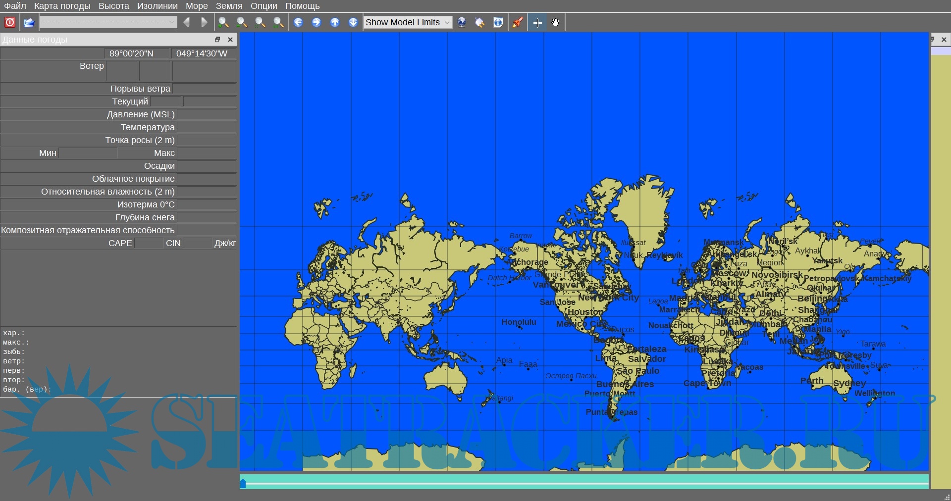 Описание: xyGrib – программное обеспечение для загрузки и визуализации метеорологических данных из файлов в формате GRIB. Данная программа позволяет производить автоматическую загрузку прогнозов погоды и волнения моря с нанесением многих параметров: ветров, давления, температуры, влажности, дождей, снега, облачности, точек росы и высотных данных и т.п.