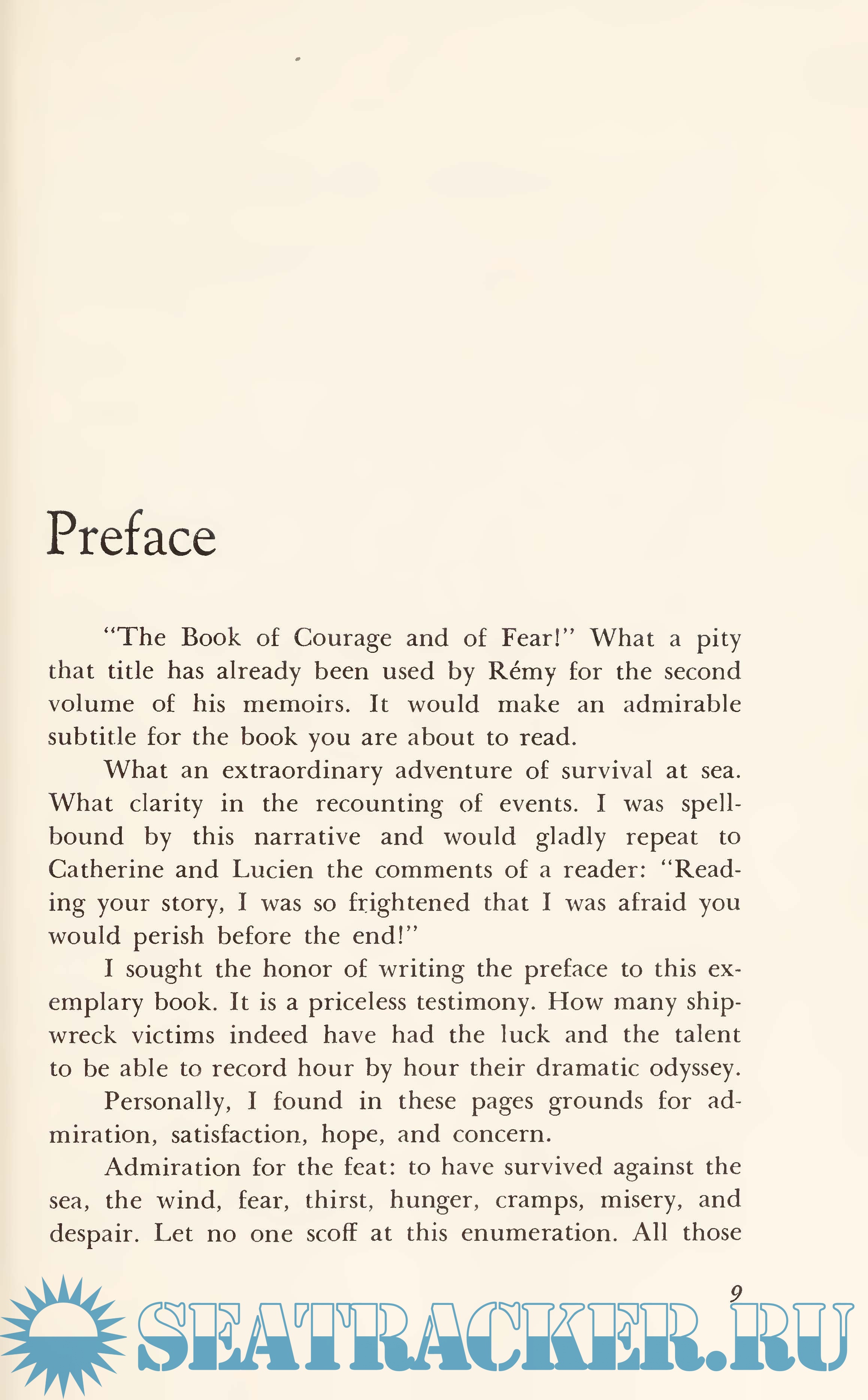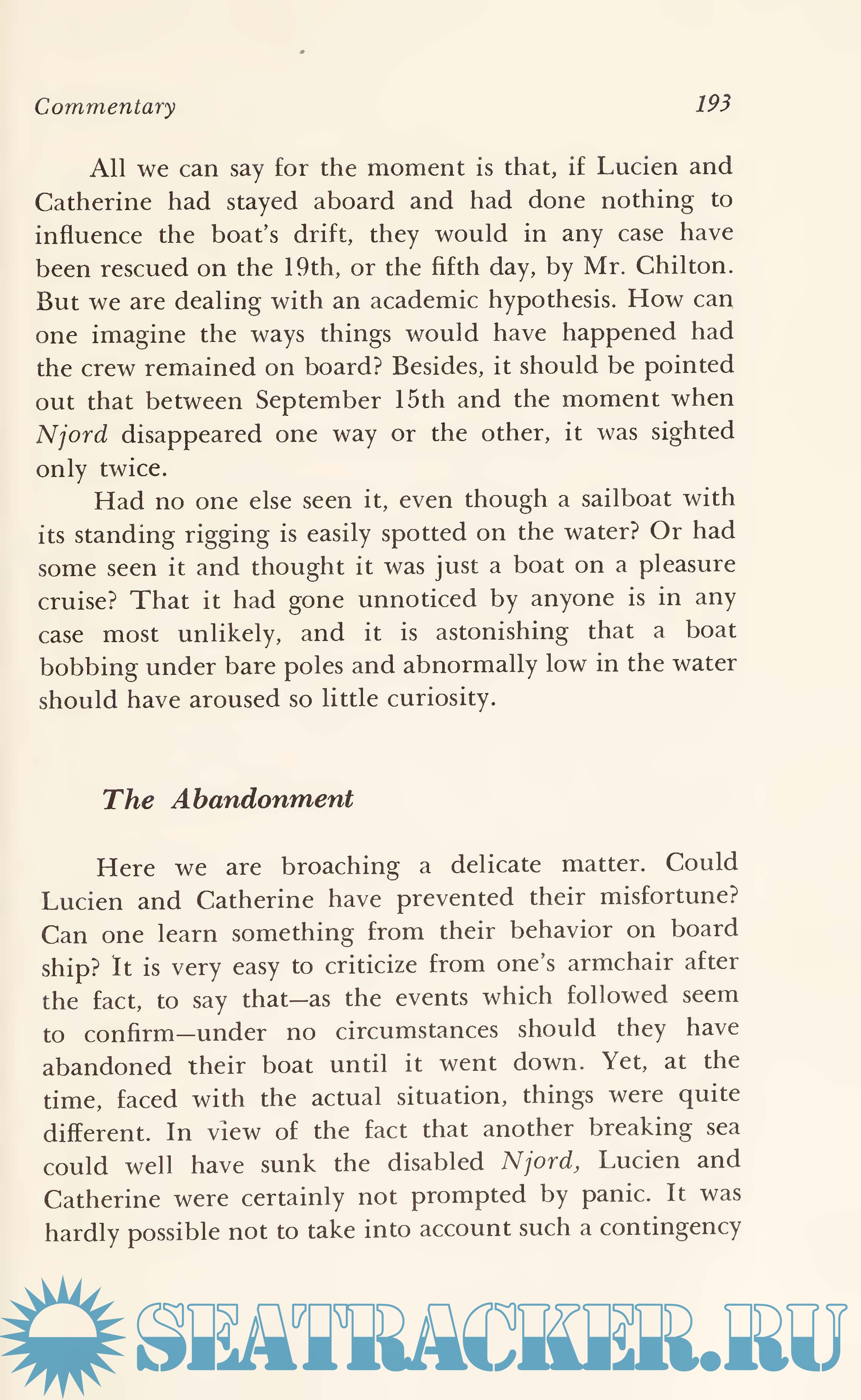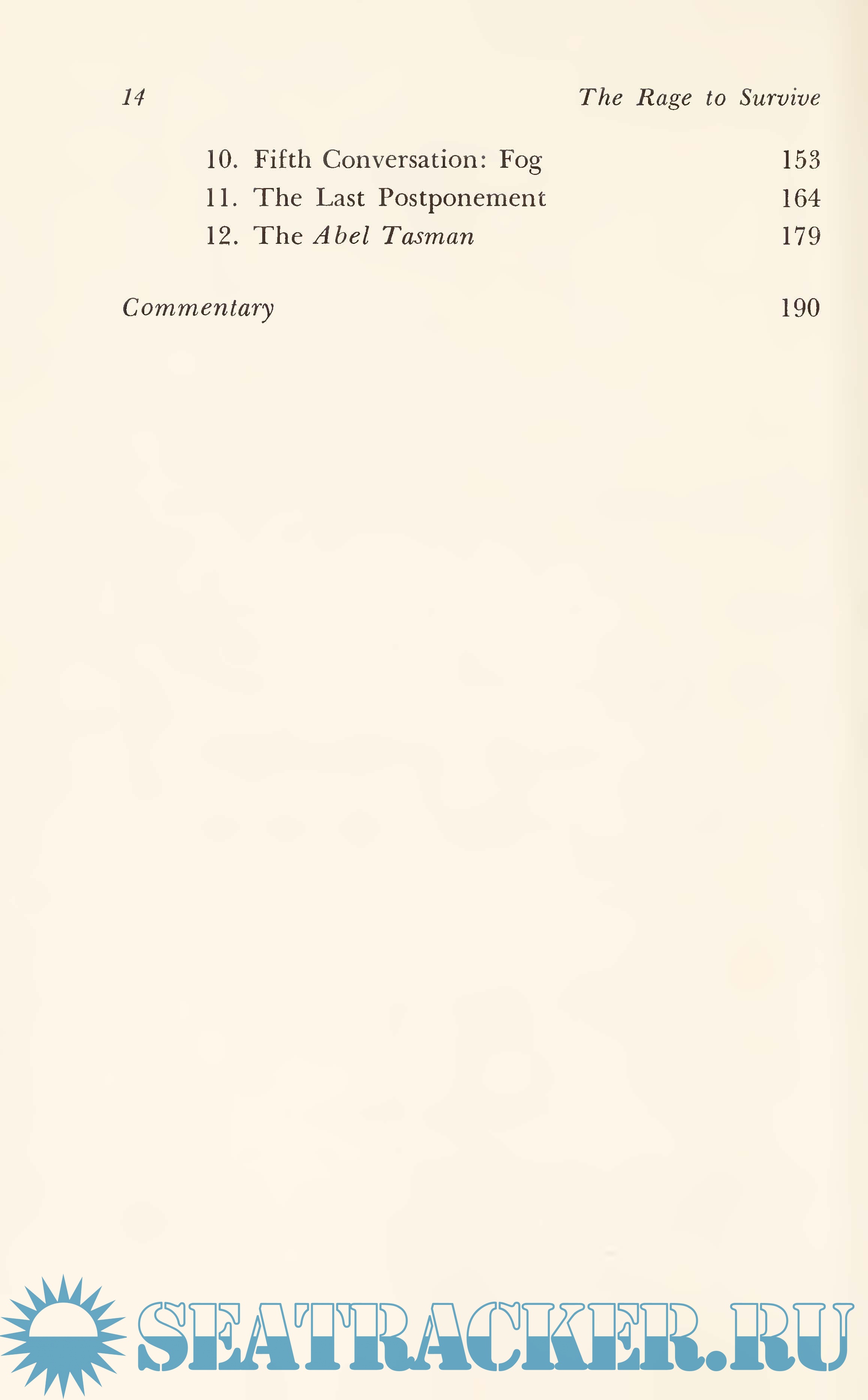 Year: 1976 Language: english Author: Jacques Vignes Genre: Textbook Publisher: WILLIAM MORROW AND COMPANY, INC. Edition: First ISBN: 0-688-02992-2 Format: PDF & EPUB Quality: Scanned pages Pages count: 230 Description: True stories of survival have always fascinated us. Such books as Alive! and Survive the Savage Sea have been international best sellers. Now comes The Rage to Survive, a true story that is not only exciting and terrifying but, above all, inspiring. In September, 1972, a young man, Lucien Schiltz, and a young woman, Catherine Plessz, set sail in Lucien’s 26-foot gaff-rigged steel cutter, Njord, to the far corners of the world. The boat was well-equipped and sturdy, but a terrible storm came up quickly in the western Mediterranean, and Njord was soon rudderless, her poles bare, her decks swamped. The couple scrambled into a raft but became separated from the boat during the first night when the mooring ring ripped out. They were now alone in the small raft with little besides the clothes they were wearing to protect or sustain them. For nearly two weeks, they drifted aimlessly, at the mercy of wind, tide, and current. They had no food during this period. The raft had no oars, no sail, no rudder, nothing to give it propulsion or direction. They had a little water, but that, too, gave out. Their bodies were raw with sores and the effects of salt and never being dry. They both thought of the other’s death and considered cannibalism. Whipped and tossed by winds and storms, they didn’t even know where they were. They had no compass. Finally, they had only the will to survive. There was nothing else to hope for, nothing else to do. And they did survive to tell their amazing story.