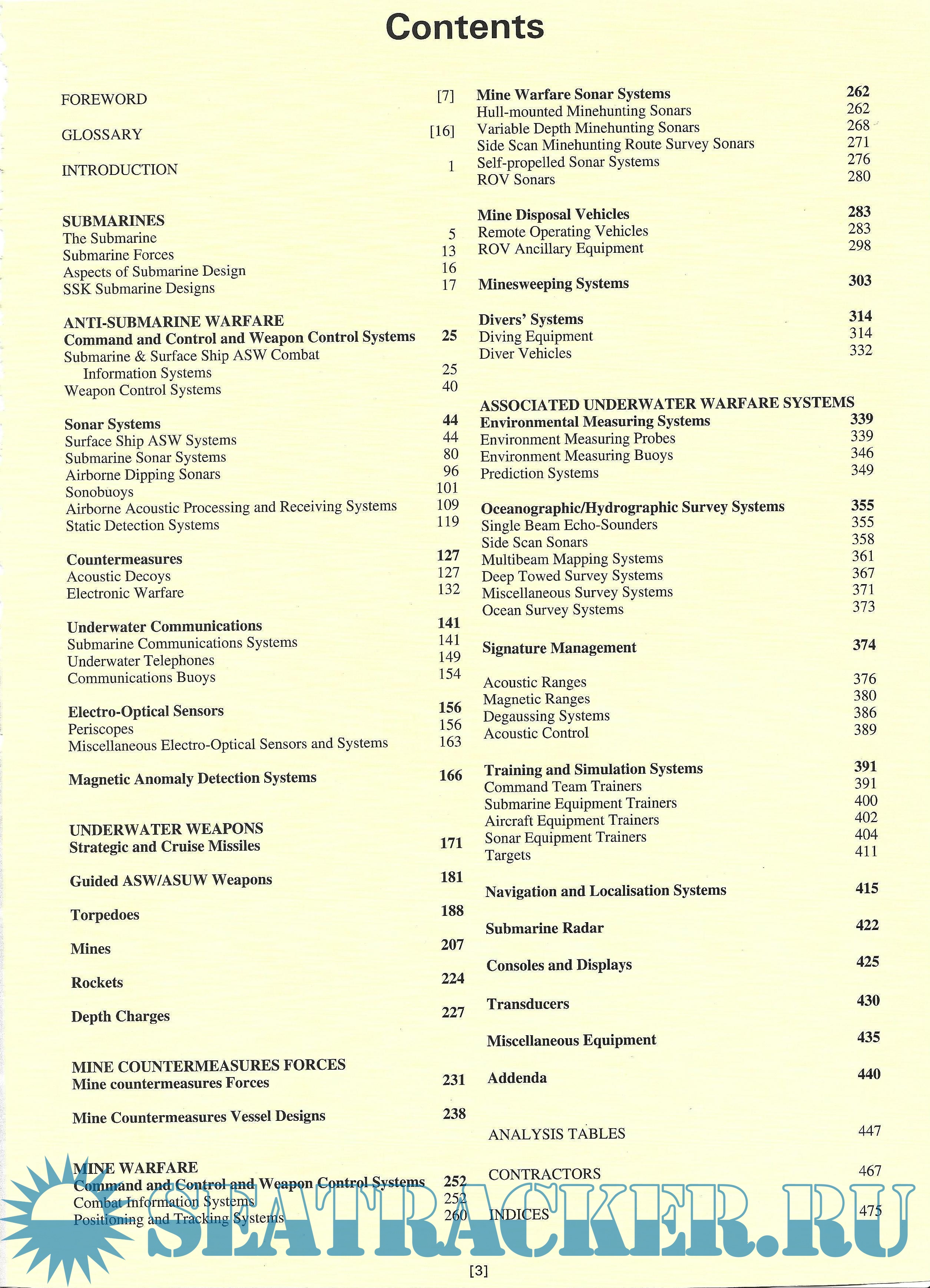 Description: A guide to airborne, submarine-borne and ship-borne underwater warfare systems, this book covers anti-submarine and mine warfare, weapons and their launch systems, and associated warfare systems. Each entry gives features, method of operation and specifications such as power output, dimensions, propulsion, range and so on. Underwater systems and weapons covered include command and control systems, sonars, weapon systems, countermeasures and communications equipment for anti-submarine and mine warfare, acoustic management, hydrographic survey systems, signature management, training and simulation, torpedos, rockets and guided weapons and their launch systems.