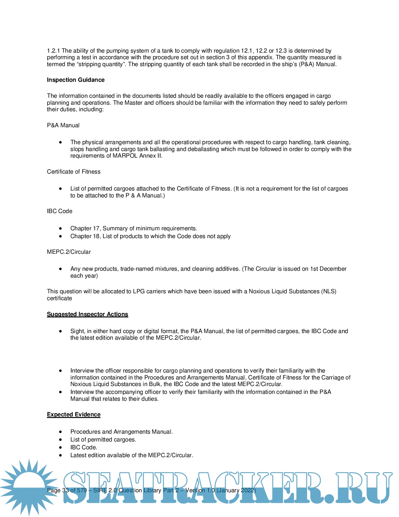 OCIMF - SIRE 2.0 - Question Library- Part-2- Chapters 8 to 12- Version 1.0 -January 2022