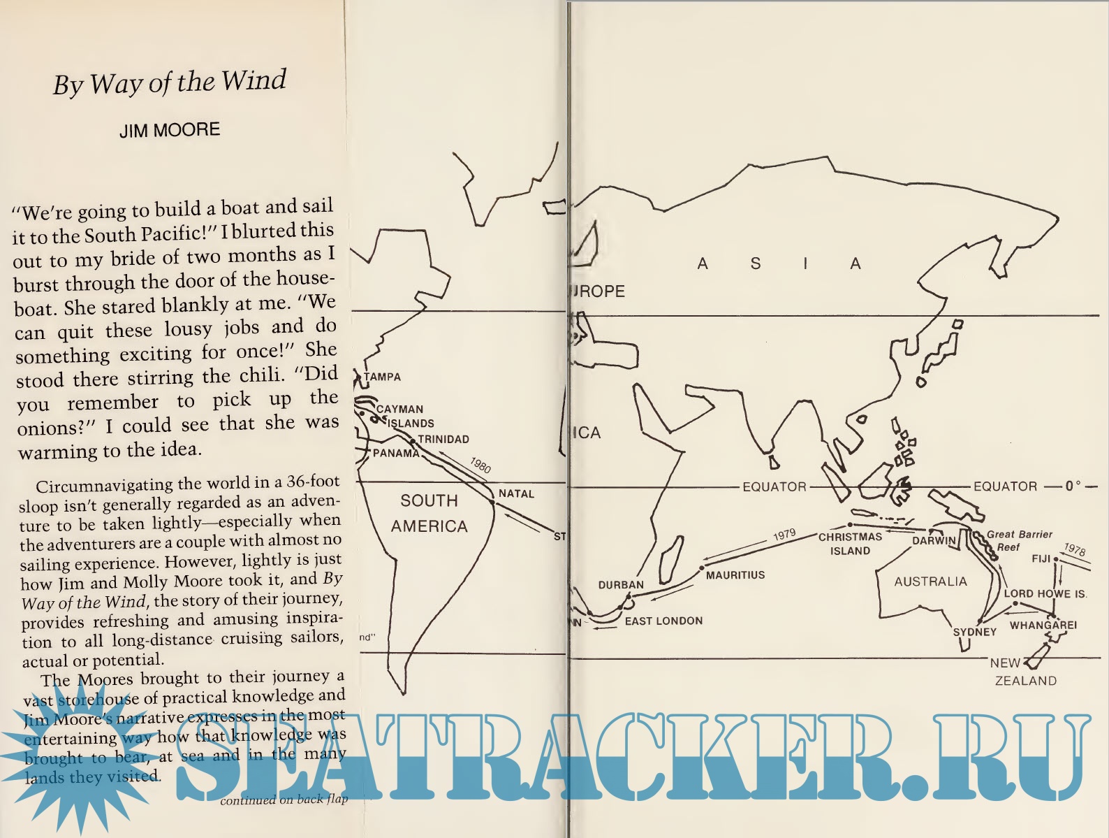 Description: The adventure begins when Jim Moore announces to his bride of two months that they will build a boat and sail to the South Pacific. Circumnavigating the world in a 36-foot sloop isn't generally regarded as an adventure to be taken lightly. However, lightly is just how Jim and Molly Moore took it and the story of their journey provides refreshing and amusing inspiration to all cruising sailors, actual or potential.