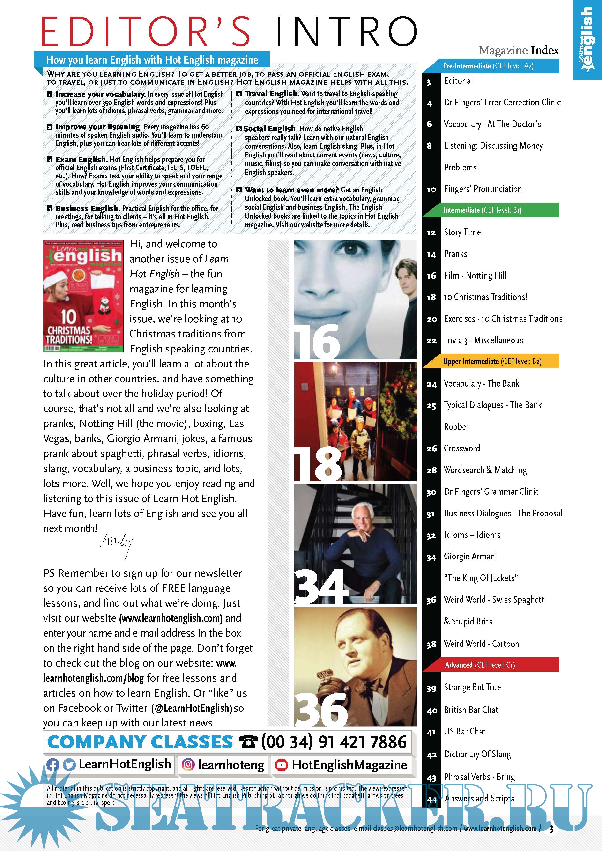 Are you learning English? Or are you an English teacher? Either way... if you're looking for a fun and interesting English magazine for learning or teaching English then you've come to the right place. Hot English magazine is a leading English resource. Its fun and colourful approach to teaching real English as it's spoken by native speakers is popular around the world. Loved by both students and teachers, there's something for everyone and all levels in Hot English magazine.