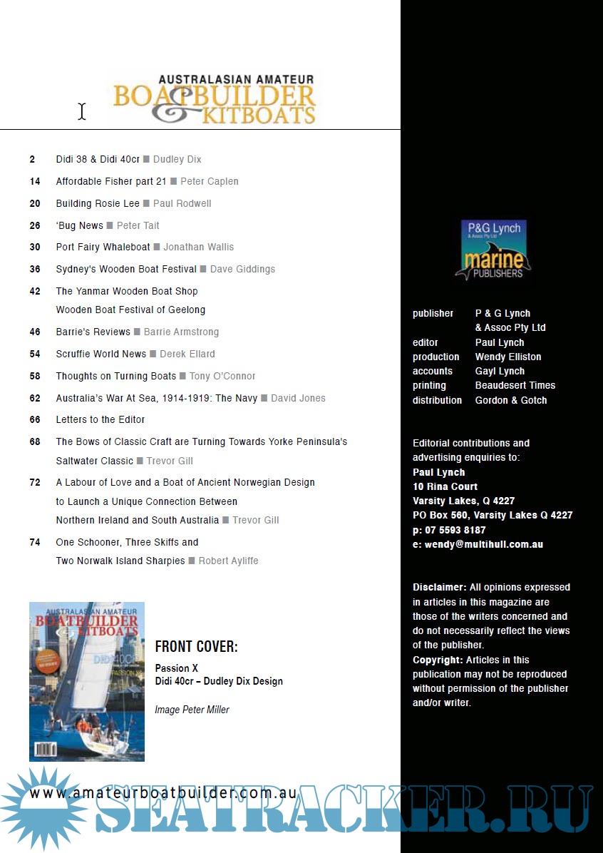 Description: Australian Amateur Boat Builder Magazine is an Australian-based specialist publication devoted exclusively to Amateur Boat Building enthusiasts