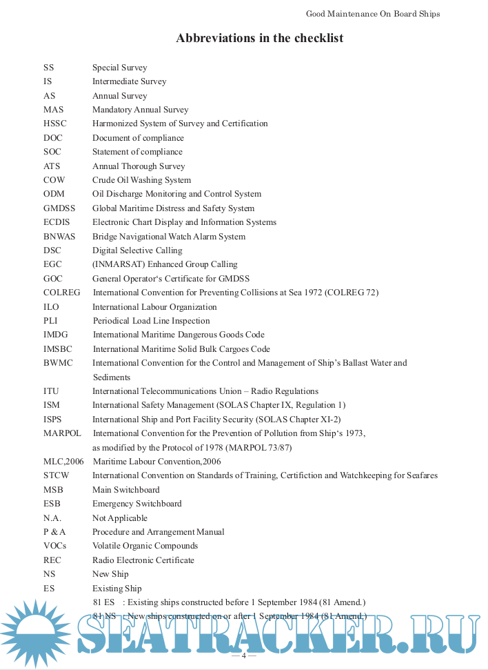 Description: Checklist for routine maintenance on board ships including