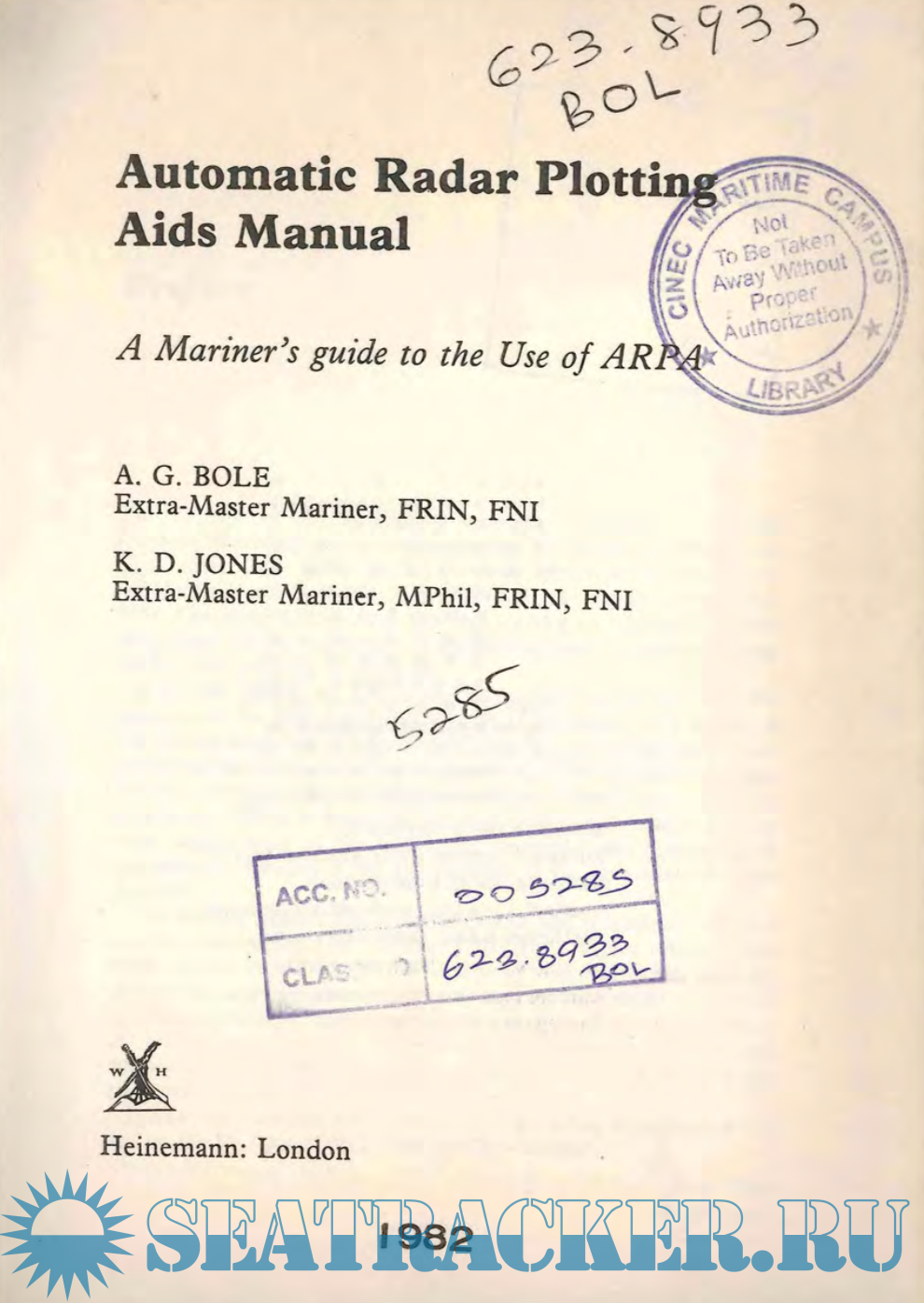 Year: 1982 Language: english Author: A.G. Bole and K.D. Jones Genre: Manual Publisher: Heineman Edition: 1 Format: PDF Quality: OCR with errors Pages count: 131 Description: The carriage of ARPA systems becomes mandatory for tankers (carrying hazardous cargoes) of more than 10,000 tons trading to the USA from July 1982, and it becomes progressively mandatory worldwide for other vessels of more than 10,000 tons from September 1984. Certification, following approved training for all Masters, Chief Mates and Officers in charge of a navigational watch on ships carrying ARPA, will probably be required. With the fitting of ARPA on ships thus increasing, and the requirement for officer training by IMCO becoming more urgent, it was felt that there was an international need for a manual ofinformation to supplement the period oftraining spent on ARPA Simulator courses. . Practical exercises will naturally predominate in these courses but since present-day ARPA is based on new and modern technology, a much wider appreciation o f the underlying principles and techniques o f operation is necessary if the full potential of the installation is to be realized. The manual follows IMCO specifications and is intended both for maritime students and for navigating and watchkeeping officers at all levels. Its use by students on ARPA courses will reduce their need for note-taking, allqwing them to spend the maximum amount oftime on practical exercises while making available to them the theory on which the practice must be based. For mariners, the manual provides material not normally covered in manufacturers' handbooks and is intended as a reference book for use at sea. It is based on the research and experience gained by the authors at sea and on the Liverpool Polytechnic ARPA Simulator.