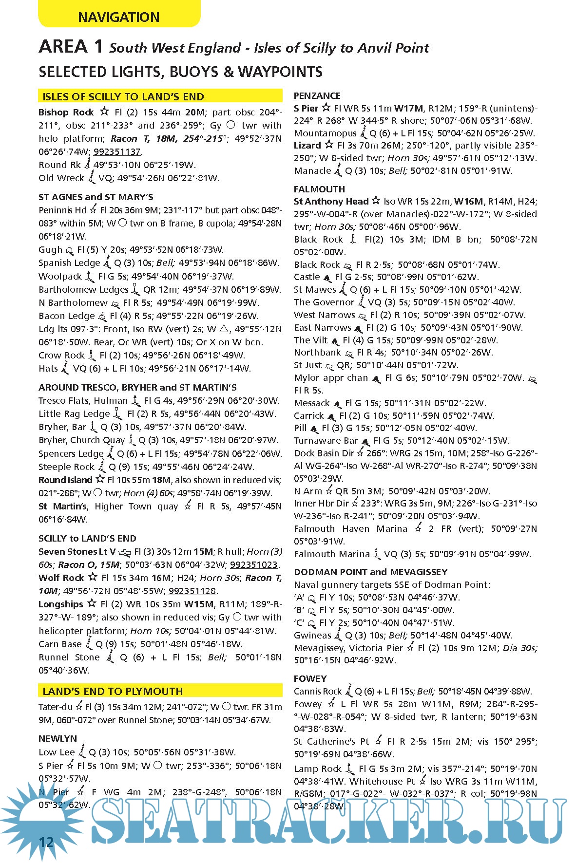 Meticulously researched, it includes a huge amount of information of value to small craft navigators: tide tables, tidal streams and tidal gates; secondary port differences; 2,500+ waypoints; radio data; light recognition; weather information; principal lights; IALA buoyage; international codes and flags; sun/moon rise/set times; emergency information.