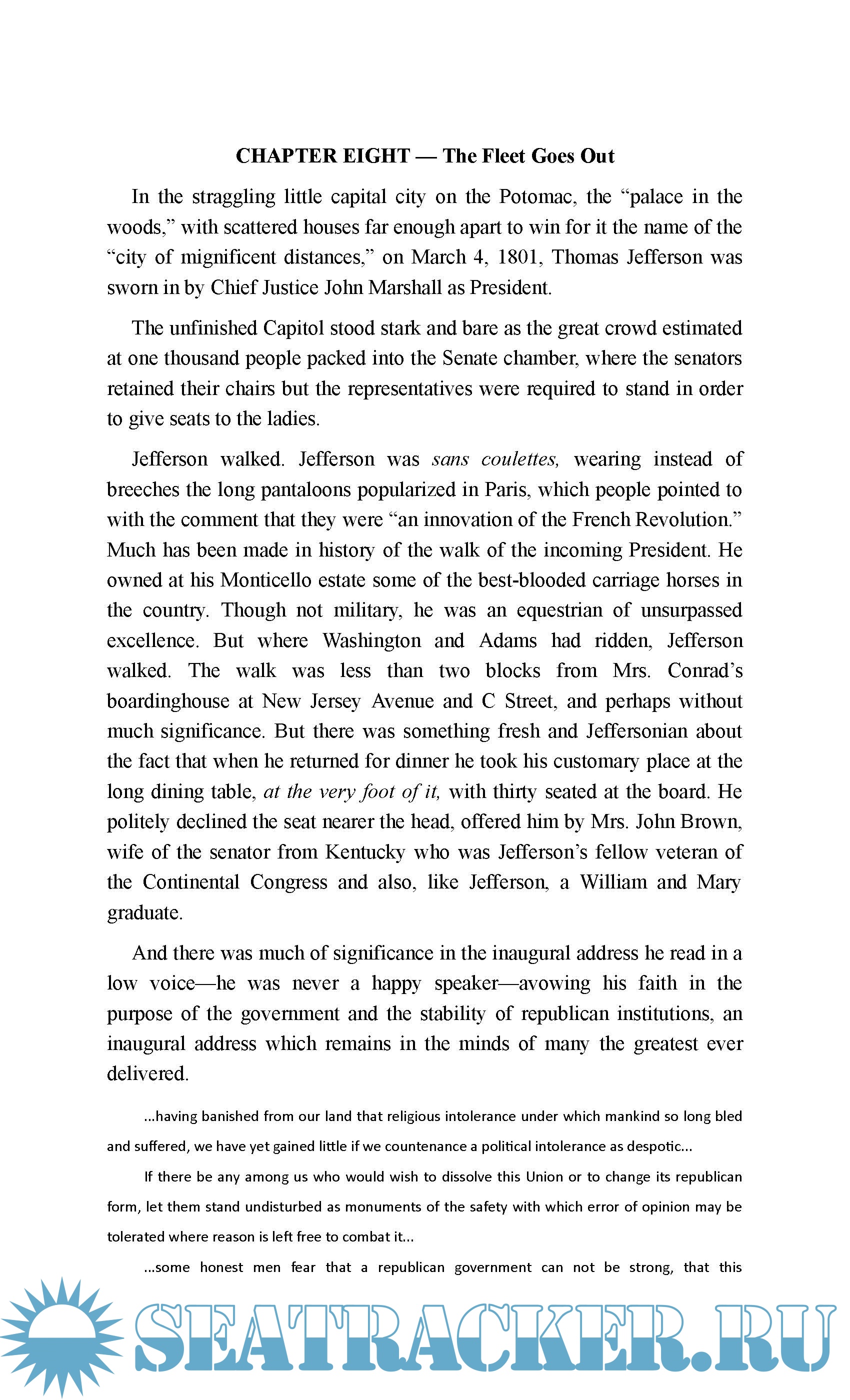 The book details the struggle of American ships such as the USS Constitution and Constellation against the pirates and Muslim warlords of the Mediterranean and North Africa in what would become known as the Barbary Wars. In addition, the ongoing political battles to obtain funding for the Navy and the construction of needed ships are described.