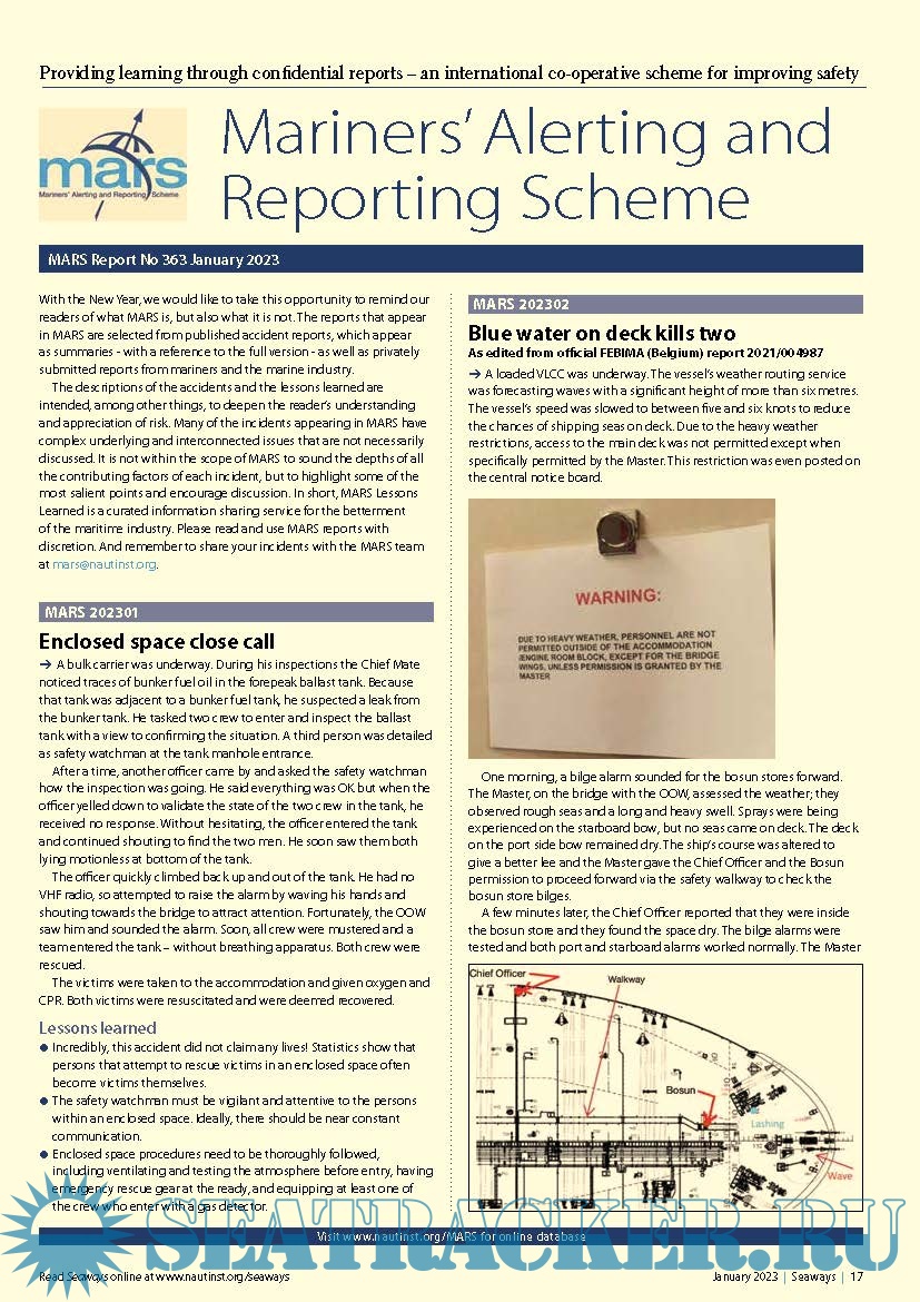 Mariners’ Alerting and Reporting Scheme (MARS) Report No.363 (January)