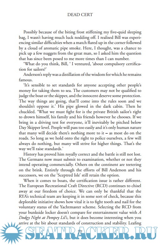 Year: 2011 Language: english Author: Tom Cunliffe Genre: - Edition: first published ISBN: ISBN 978-1-119-99283-7 Format: EPUB Quality: Scanned pages + text layer Pages count: 244 Description: The sea is the last great escape. And Tom is one of its staunchest defenders. You may not always agree with his outspoken views, bu the can spin a good yarn with the best. Cunliffe is as irascible as he is indispensable and this collection of his columns makes an ideal bunkside companion from one of the great cruising commentators. Paul Gelder Editor, Yachting Monthly Additional info: Additional info: https://seatracker.info/tracker.p...id=13371#results