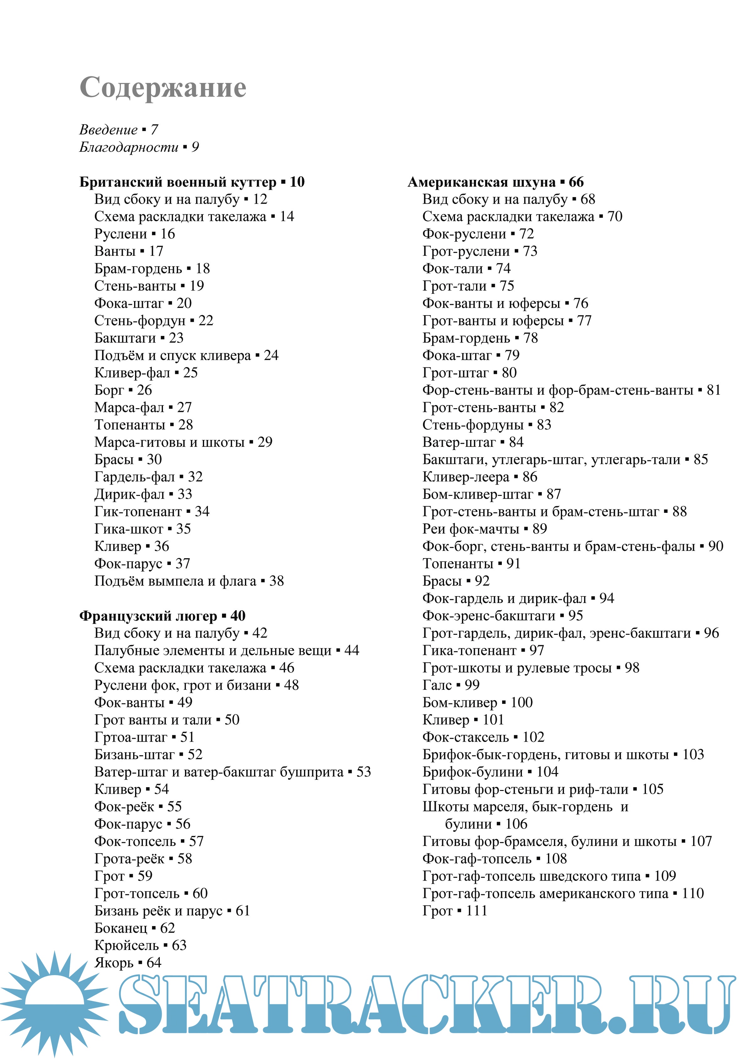 Год выпуска: 2007 Язык: русский Автор: Lennarth Petersson перевод Суханова Сергея Жанр: Руководство Издательство: Naval Institute Press Формат: PDF Качество: Изначально компьютерное (eBook) Количество страниц: 115 Описание: В этой богато иллюстрированной книге показывается каждая деталь такелажа типичных малых судов восемнадцатого века - английского куттера, трёхмачтового французского люгера и американской шхуны. Около двухсот иллюстраций показывают где и как размещается каждый элемент такелажа, положение и крепление его снастей. Эта книга поможет моделисту как при постройке парусной модели, так для получения информации по конкретному вопросу устройства такелажа.