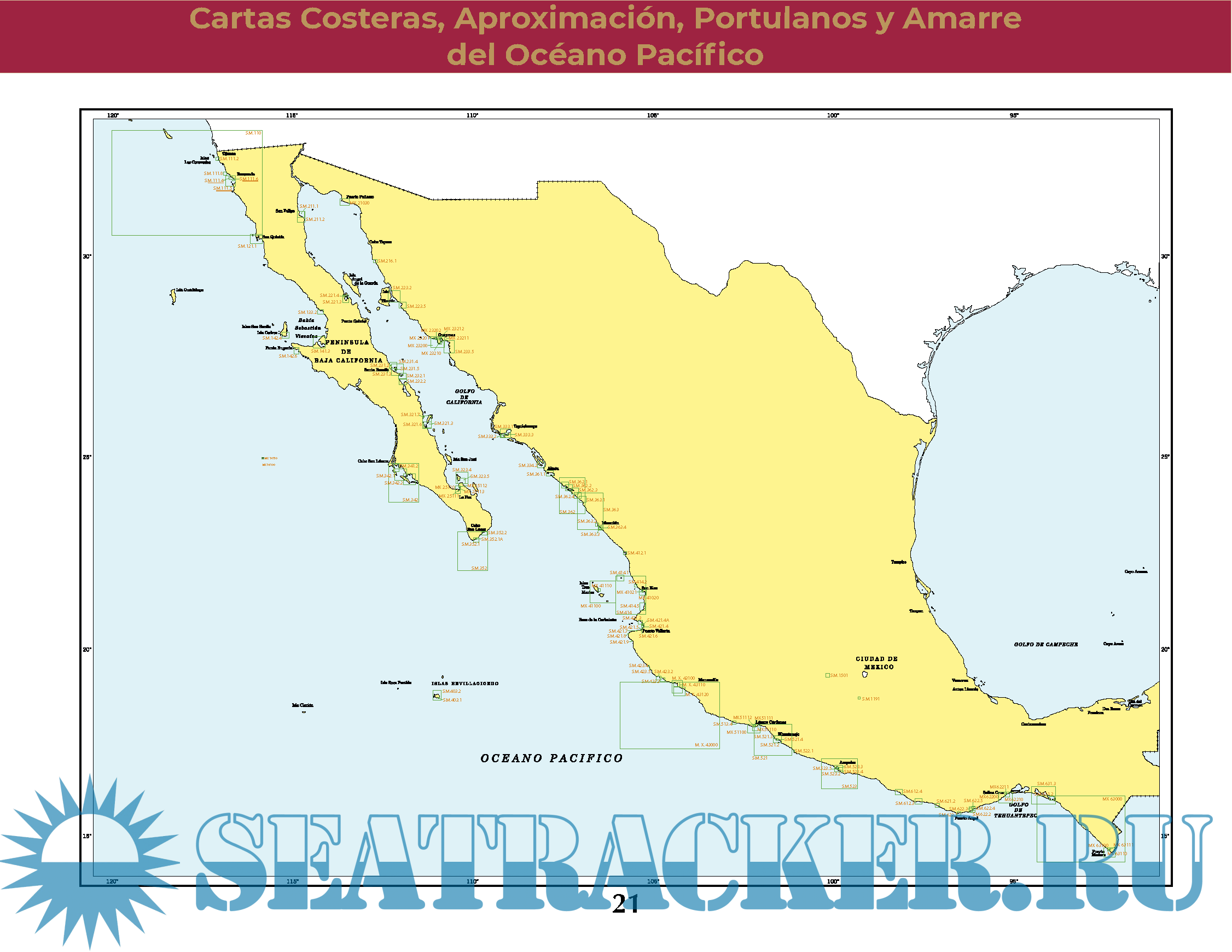 Description: The nautical and cartographic tourist information of the main ports corresponding to the coast of the Gulf of Mexico and the Mexican Pacific, with reference to 53 ports, and the Gulf of Mexico and the Mexican Caribbean with 45 ports including 90 Raster Nautical Chart (BSB/KAP) by Secretaria de Marina (SEMAR) ed. 2018.