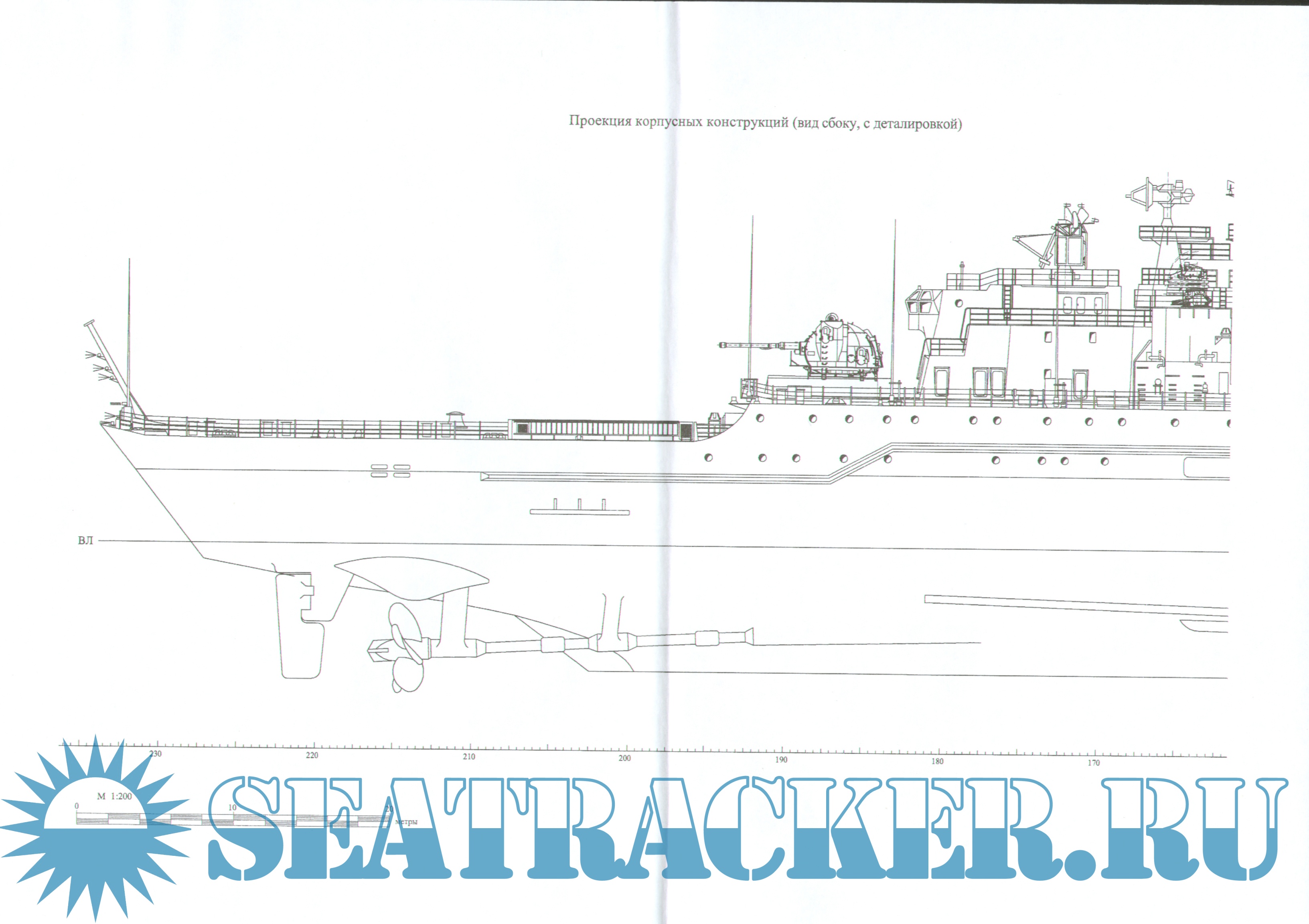Странное описание чертежа. Кстати. насчет "гнилой": проходил в молодые годы стажировку после ВМК на "Кирове" (систершип Петра Великого), был он тогда уже "Адмирал Ушаков", если не ошибаюсь. После 4-х лет у стенки состояние конструкций было очень неплохое - сталь качественная, наверное, на вояк не жалели.