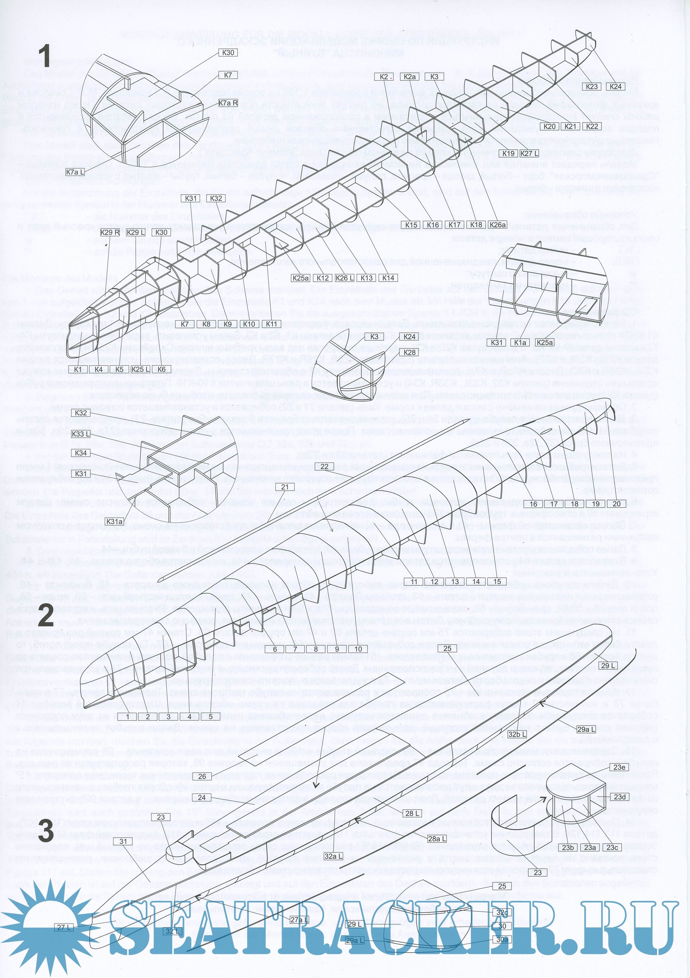 Описание: Модель эскадренного миноносца "Буйный" выполнена в масштабе 1:100 на основе чертежей А.А. Гармашева, М.Л. Соколова и архивных фотографий. Модель не является сложной, но требует аккуратности при сборке некоторых деталей. Перед началом работы следует внимательно ознакомиться с описанием и расположением деталей на листах. Сборка деталей производится в порядке возрастания нумерации. Для придания естественных обводов днище рекомендуется прогрунтовать и покрасить. Некоторые детали изготавливаются самостоятельно согласно приведенным шаблонам.