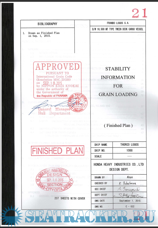 MV THORCO LOGOS - Damage Stability Information for Master - Honda Heavy Industries Co., Ltd [2015,…