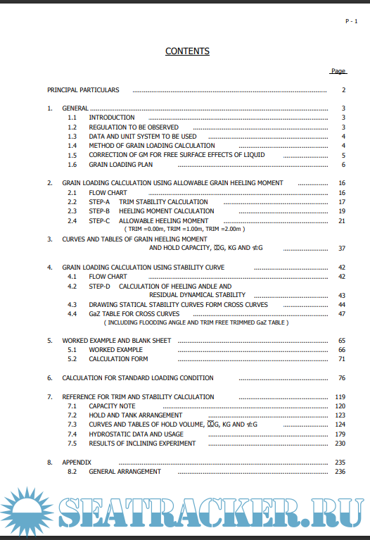 Description: This is stability information for grain loading of D/W 16500 mt type tween deck cargo vessel for training or for reference purpose.