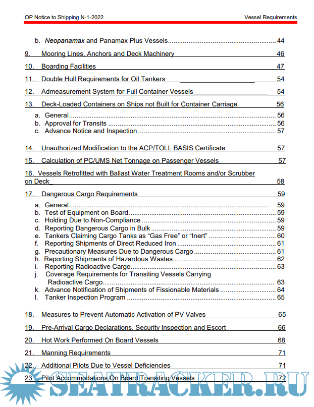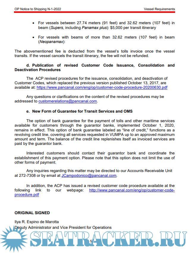 Panama Canal Authority NT Notice to Shipping No. N-1-2022