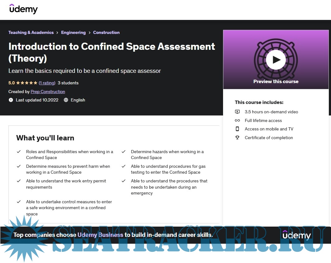 Description: Welcome to the Introduction to Confined Space Assessment (Theory) course, the only course you need to learn all the basics required to be a confined space assessor.