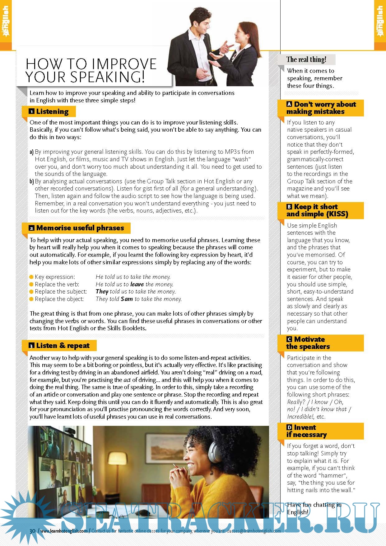 Great news! The latest issue of Hot English (250) is out now! This month: Improve your business English pronunciation with these 16 words! AND LOTS, LOTS MORE! By reading and listening to all this great content, you’ll improve your English reading and listening skills and learn up to 1,000 useful words or expressions. Plus, you’ll get a better job and pass English-language exams more easily. Guaranteed!