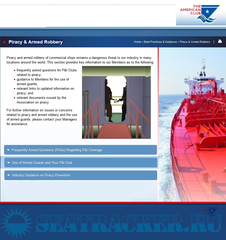Description: Piracy and armed robbery of commercial ships remains a dangerous threat to our industry in many locations around the world. This section provides key information to our Members as to the following: