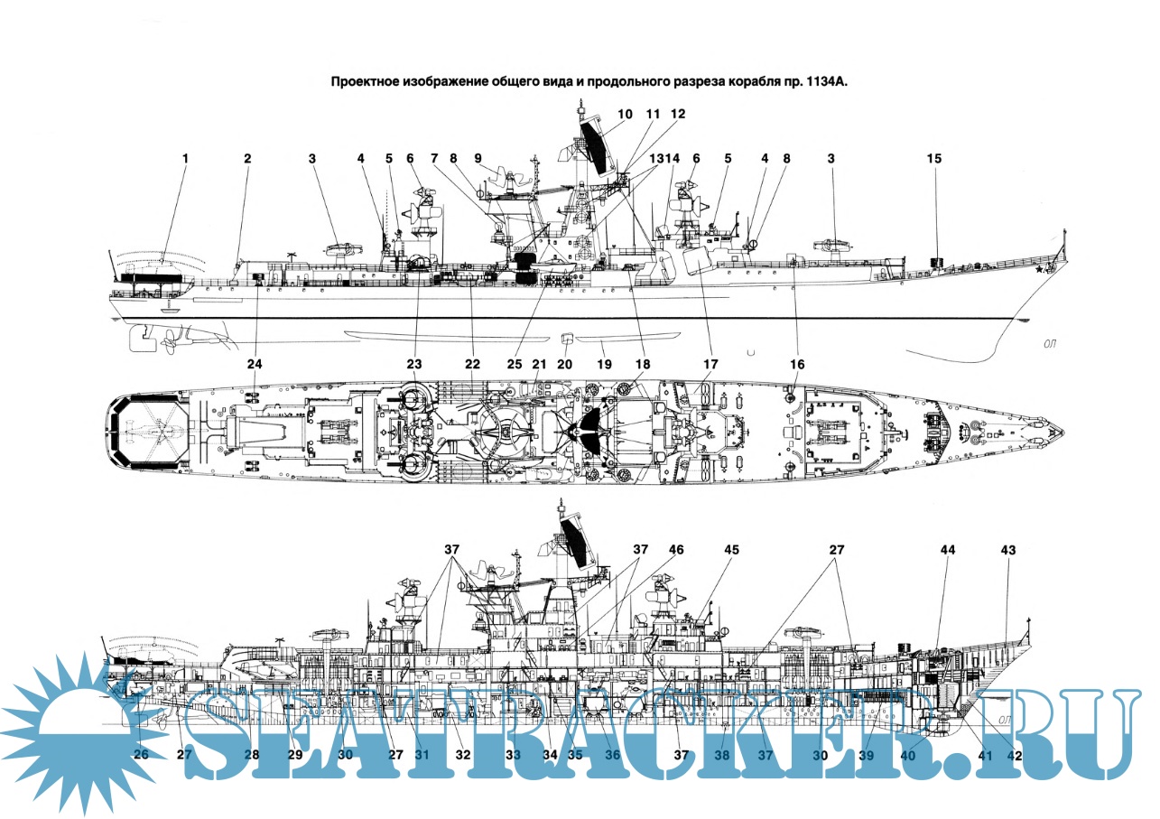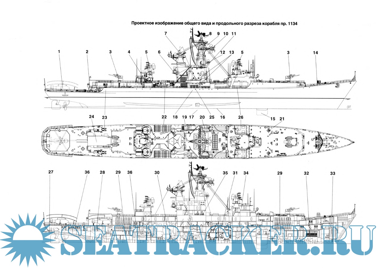 Описание: В 60-70-е гг. в Советском Союзе на двух судостроительных заводах в Ленинграде и Николаеве по трем проектам, разработанным Северным ПКБ, был построен 21 корабль со схожими номерами проекта — 1134, 1134А, 1134Б. В шифре присутствовало объединяющее слово — «Беркут», да и первоначальное боевое предназначение у них было одним и тем же. Появлению этих кораблей способствовал ряд последовательных решений советского правительства, направленных на создание дальней зоны противолодочной обороны страны, с целью ликвидации ракетно-ядерной угрозы, исходившей от американских атомных подводных лодок, патрулировавших в отдаленных районах Мирового океана.