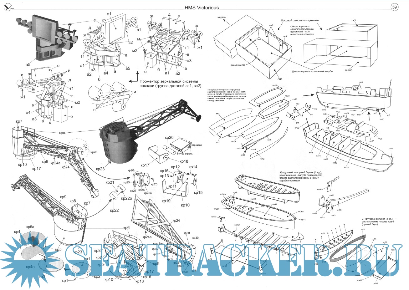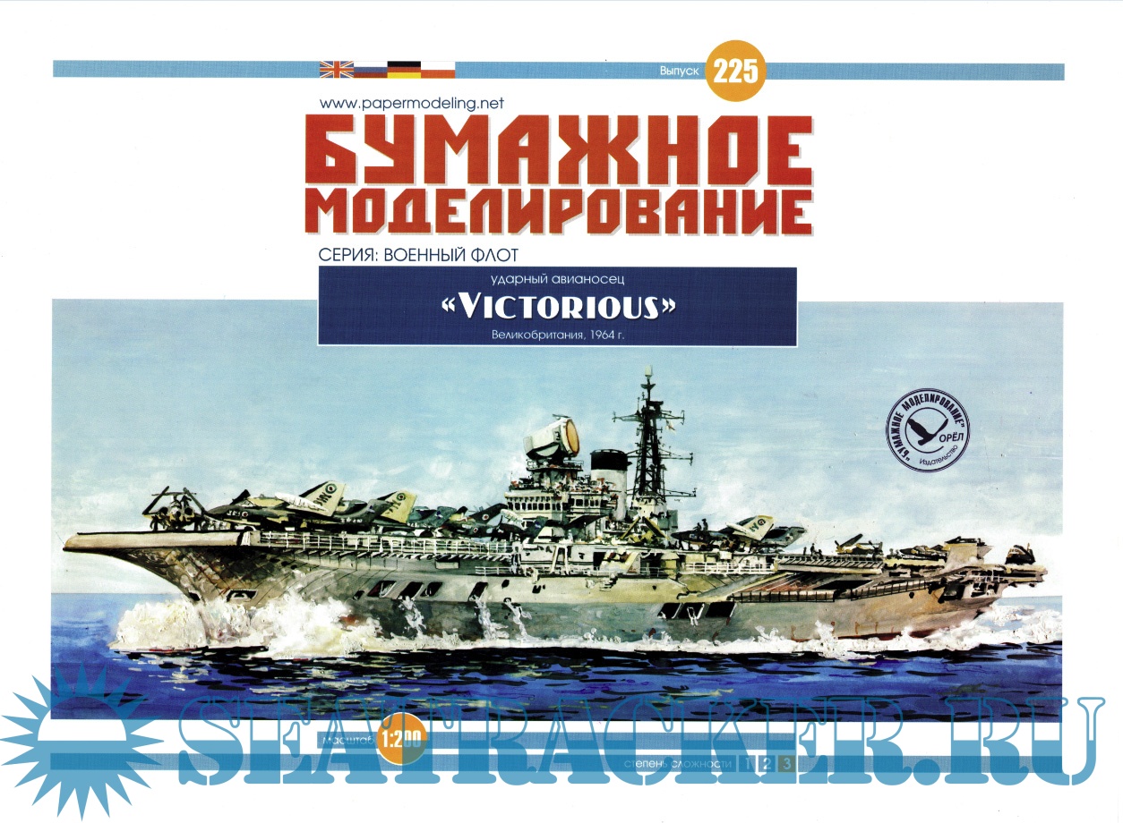 89 листов цветных выкроек и схем сборки для создания модели в масштабе 1:200 ударного авианосца "Victorions" Великобритания по состоянию на 1964 год