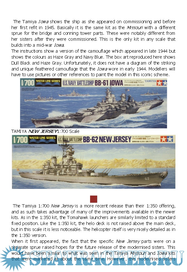 Year: 2012 Language: english Author: Lester Abbey Genre: Technical book Publisher: Chatman Publishing Edition: SipCraft 17 Format: EPUB Quality: eBook Pages count: 119 Description: The four Iowa class battleships operating together. In their whole careers they were only together operationally for this one day, 7 June 1954. Even though they comprised a squadron, one was always either building or refitting. The Iowa is in the foreground, then the Wisconsin, Missouriand New Jersey.