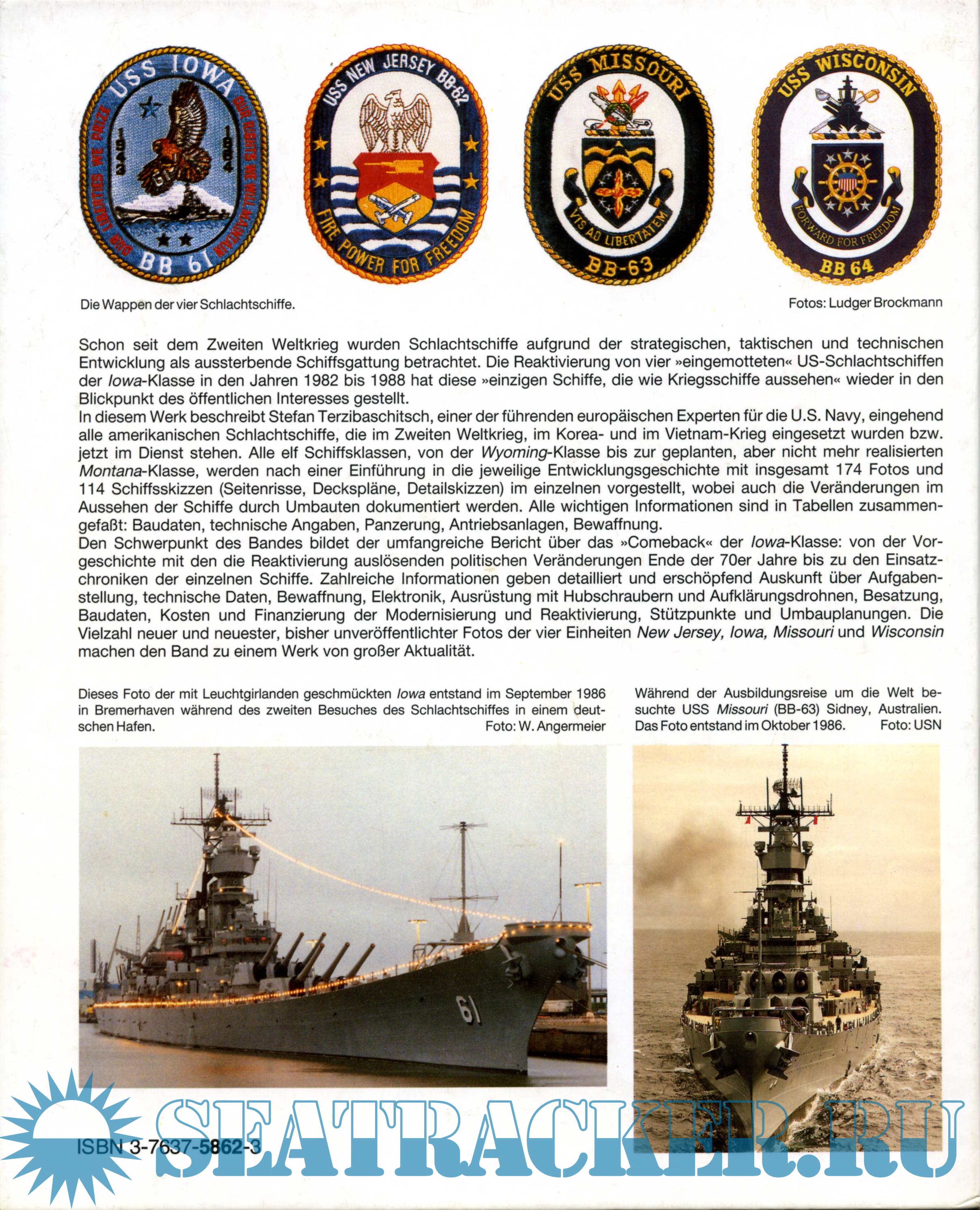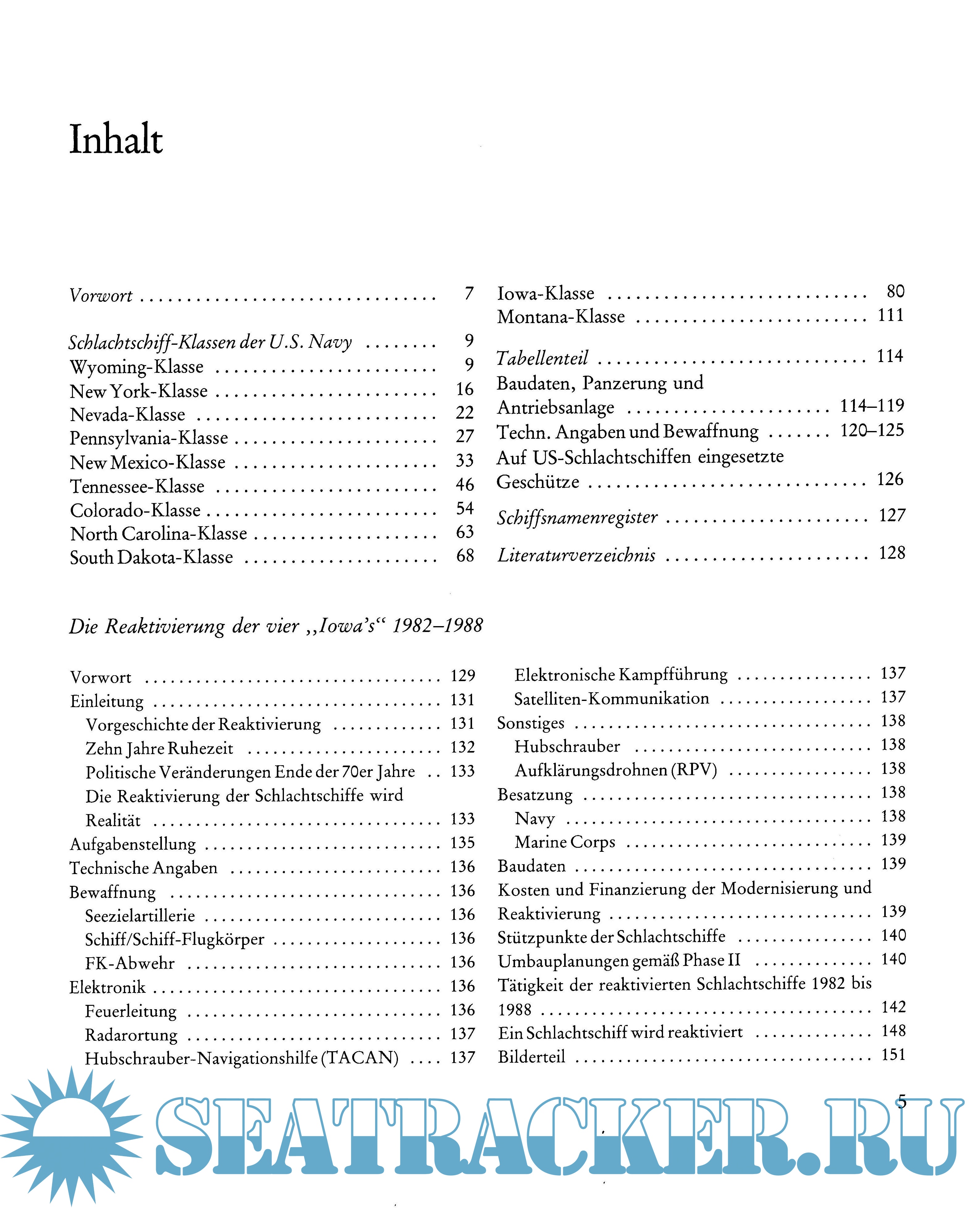 Den Schwerpunkt des Bandes bildet der umfangreiche Bericht über das »Comeback« der /owa-Klasse: von der Vorgeschichte mit den die Reaktivierung auslösenden politischen Veränderungen Ende der 70er Jahre bis zu den Einsatzchroniken der einzelnen Schiffe. Zahlreiche Informationen geben detailliert und erschöpfend Auskunft über Aufgabenstellung, technische Daten, Bewaffnung, Elektronik, Ausrüstung mit Hubschraubern und Aufklärungsdrohnen, Besatzung, Baudaten, Kosten und Finanzierung der Modernisierung und Reaktivierung, Stützpunkte und Umbauplanungen. Die Vielzahl neuer und neuester, bisher unveröffentlichter Fotos der vier Einheiten New Jersey, Iowa, Missouri und Wisconsin machen den Band zu einem Werk von großer Aktualität.
