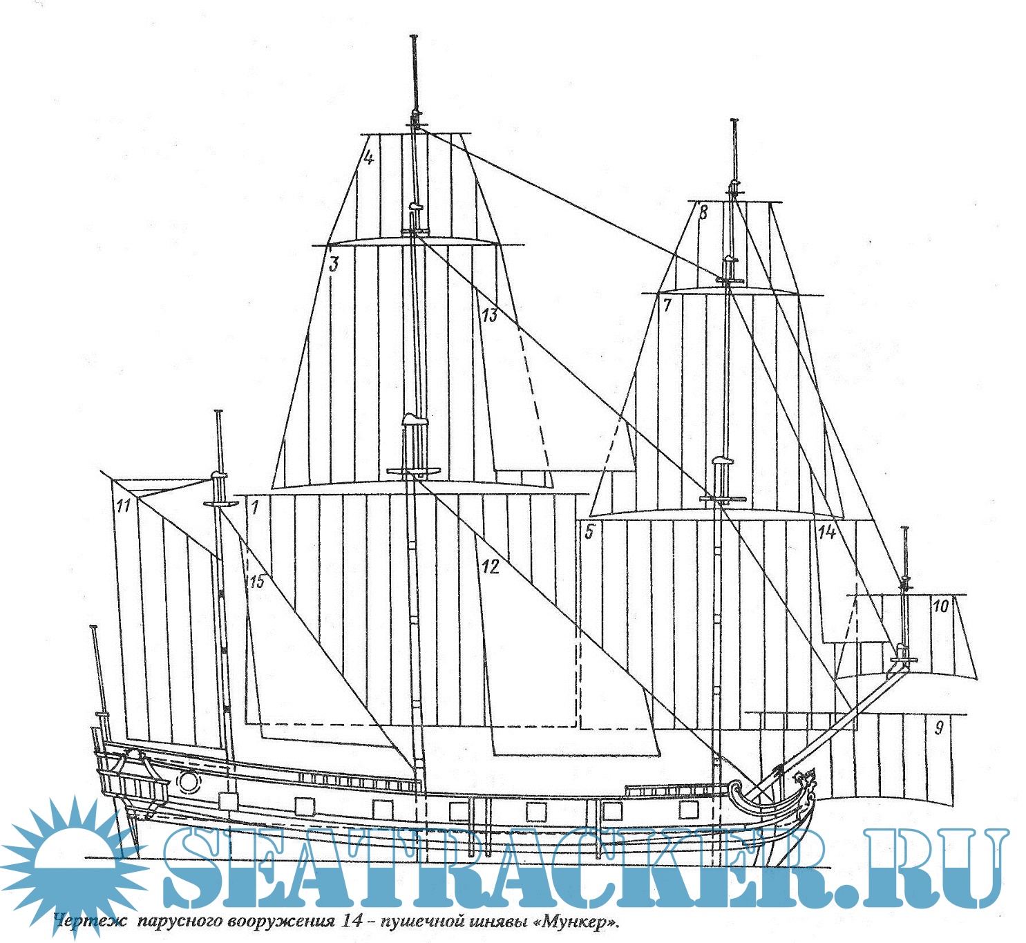 Описание: Чертежи выполненные Петром 1 14-ти пушечной шнявы "Мункер"