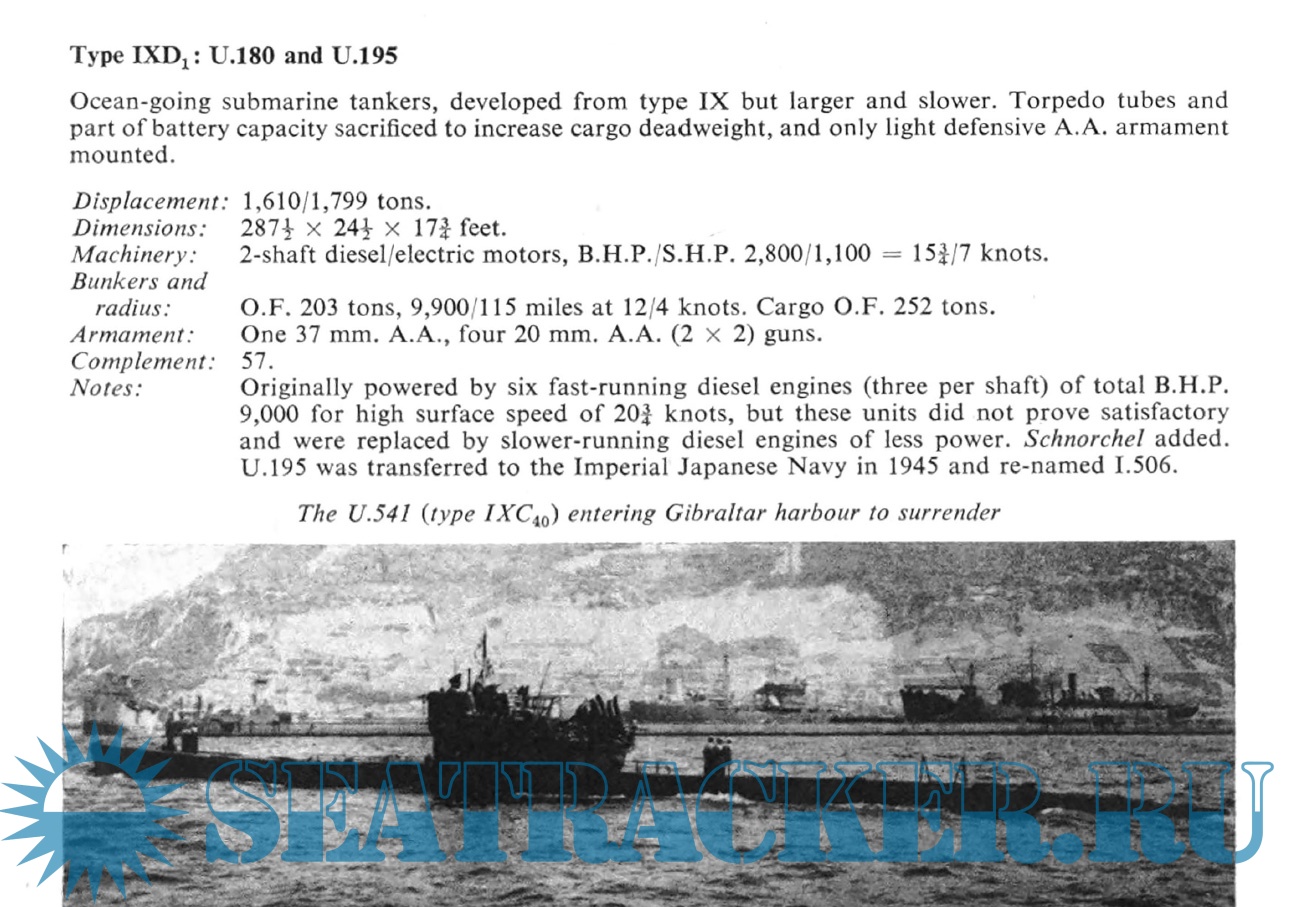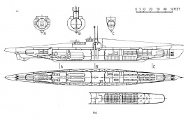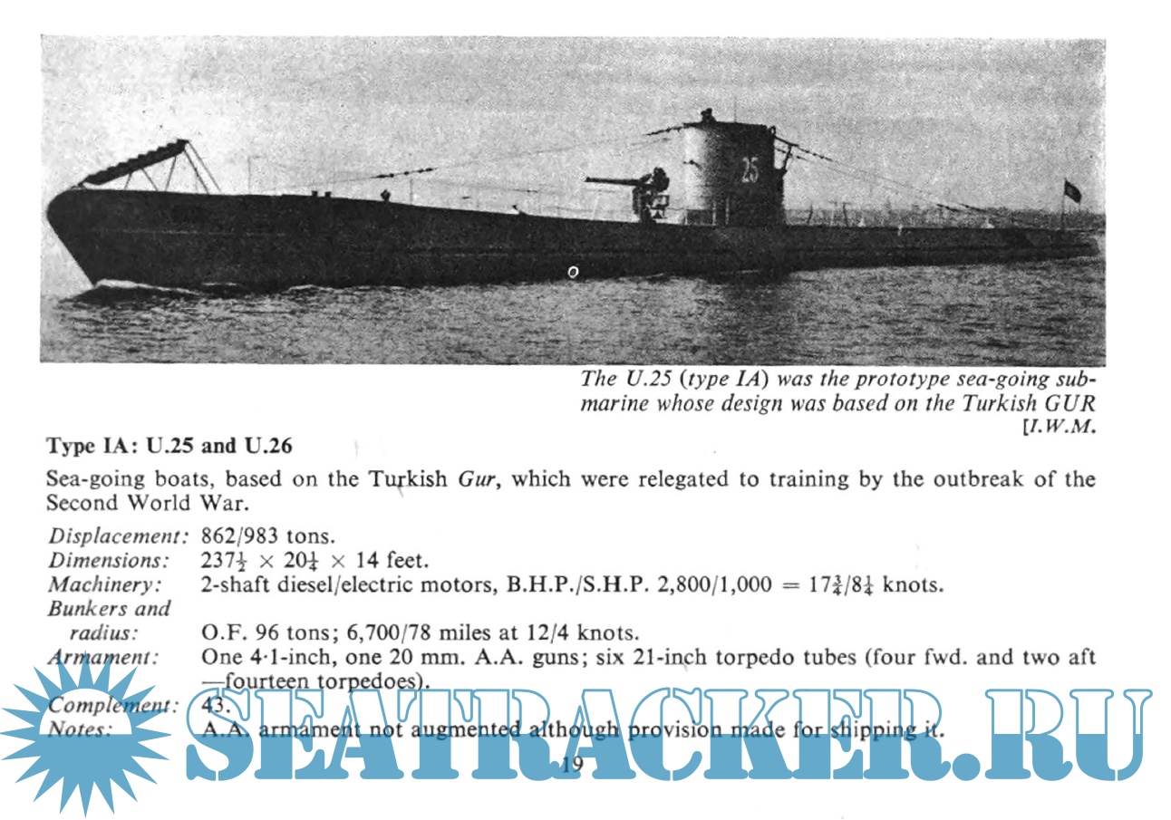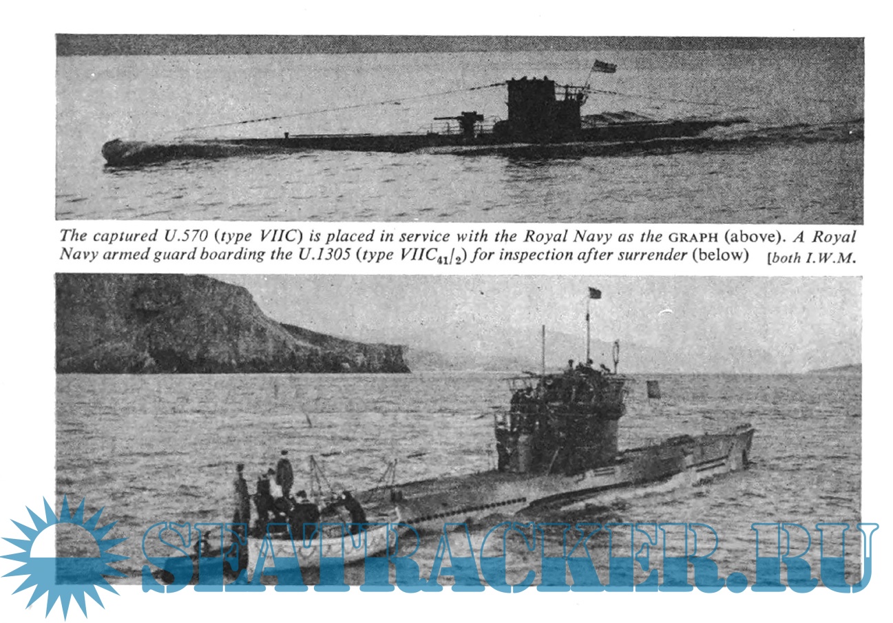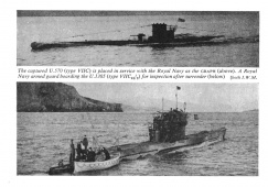 marines, with dual diesel-electric propulsion, intended to spend a quarter of their time on the surface, submerging only to attack or escape detection. Consequently surface performance was superior to that under water. This resulted in such characteristic features as the fitting of a low-angle gun, an extensive deck casing and externally stowed torpedoes. Effective Allied counter-measures eventually drove this type of submarine from the sea, but not until it had exacted its grim toll from warships and merchantmen alike.
