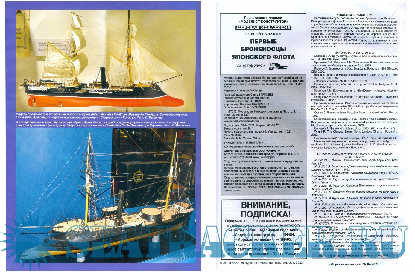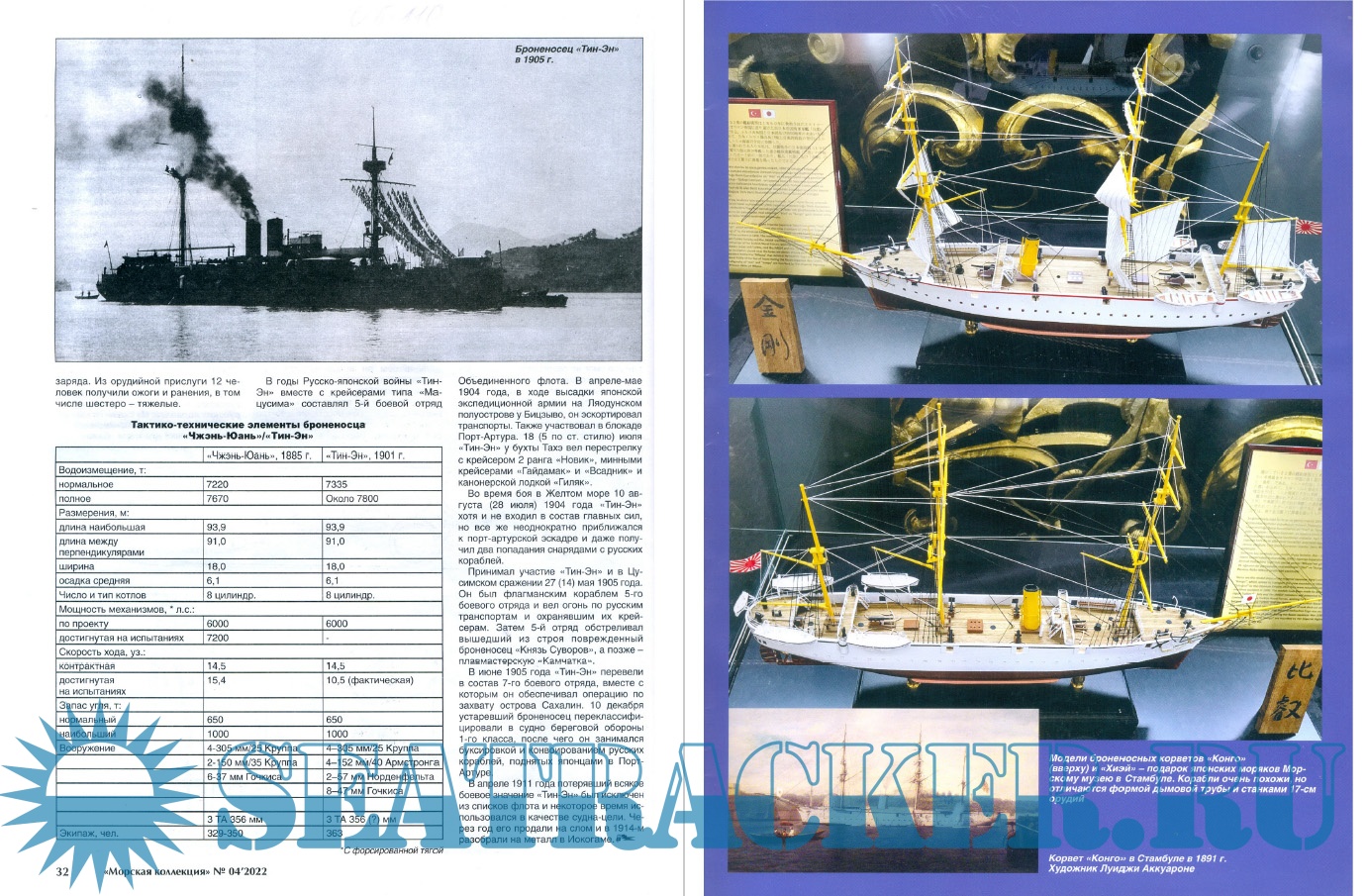 Описание: Настоящий выпуск посвящен первым броненосцам Японского Императорского флота. Эти несерийные и даже в некотором роде случайные корабли сыграли важную роль в становлении морской мощи Страны восходящего солнца. На них японские моряки осваивали непривычную технику, совершали дальние океанские плавания, одерживали первые победы в морских сражениях. Броненосцы-ветераны «Фусо» и «Тин-Эн» приняли участие в Русско-японской войне 1904-1904 годов, хотя, конечно, к тому времени они устарели и привлекались для выполнения лишь второстепенных задач.
