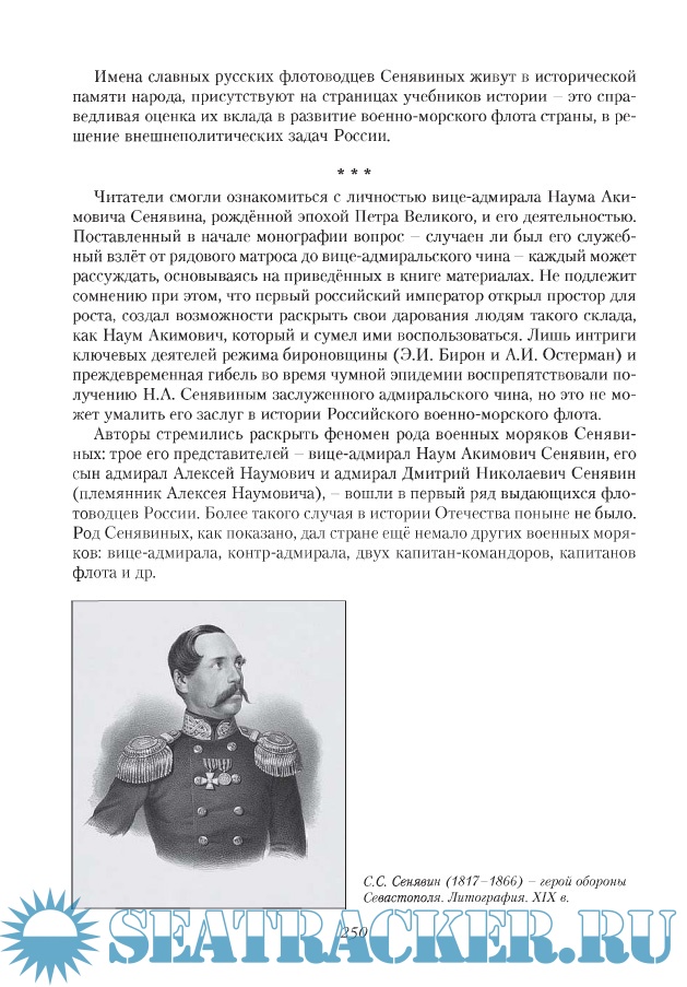 Описание: Профессор ЛГУ В.В. Мавродии (1908-1987) справедливо ставил имя вице-адмирала Наума Акимовича Сенявина (1681-1738) в списке прославленных русских флотоводцев на второе место после императора Петра Великого, продолжая перечень фамилиями таких выдающихся адмиралов эпохи парусного флота» как Г.А. Спиридов, Ф.Ф. Ушаков и Д.Н. Сенявин. Тем не менее жизни и деятельности выдающегося российского флотоводца эпохи рождения Российского военно-морского флота Н.А. Сенявина до выхода из печати этой книги не было посвящено ни одной научной монографии. Настоящее издание восполняет эту несправедливость в исторической памяти Отечества. Значительная часть книги посвящена вкладу военных моряков и других деятелей из рода Сенявиных в созидание Великой России. Авторы книги полагают, что список перечисленных выше славных имён российских флотоводцев следует дополнить также именем сына вице-адмирала Н.А. Сенявина адмирала Алексея Наумовича Сенявина (1722-1797), деятельность которого тоже освещена в монографии.