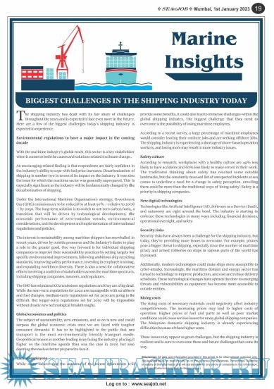 Description: The Sea and Job magazine launched in May 2007, was the second venture of Sea Line Group succeeding 'seajob.net' bringing the much renowned essence to the Group, the Sea and Job Magazine quickly gained popularity, becoming the No. 1 Shipping Magazine that came to be widely circulated all over India. Sea and Job over the years has evolved as the most trusted, ethical, objective and read maritime publication that possesses a large database of subscribers from various verticals in the industry.The magazine provides informative and interesting articles covering not just the shipping world but also the world outside it.Sea and Job is also a medium for the shipping/ manning companies to advertise marine jobs and also to promote their organization by publicizing internal activities like seminars, sports events and parties.Some notable endeavors of the magazine include the Know Your Recruiter Column, the Sailing Episodes Column and the Marine Insights section. The consistent efforts and the dedication to provide extraordinary services to the industry has resulted in the magnifying popularity and patronage of Sea and Job.