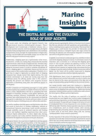 Description: The Sea and Job magazine launched in May 2007, was the second venture of Sea Line Group succeeding 'seajob.net' bringing the much renowned essence to the Group, the Sea and Job Magazine quickly gained popularity, becoming the No. 1 Shipping Magazine that came to be widely circulated all over India. Sea and Job over the years has evolved as the most trusted, ethical, objective and read maritime publication that possesses a large database of subscribers from various verticals in the industry.The magazine provides informative and interesting articles covering not just the shipping world but also the world outside it.Sea and Job is also a medium for the shipping/ manning companies to advertise marine jobs and also to promote their organization by publicizing internal activities like seminars, sports events and parties.Some notable endeavors of the magazine include the Know Your Recruiter Column, the Sailing Episodes Column and the Marine Insights section. The consistent efforts and the dedication to provide extraordinary services to the industry has resulted in the magnifying popularity and patronage of Sea and Job.