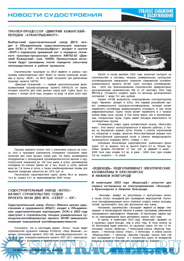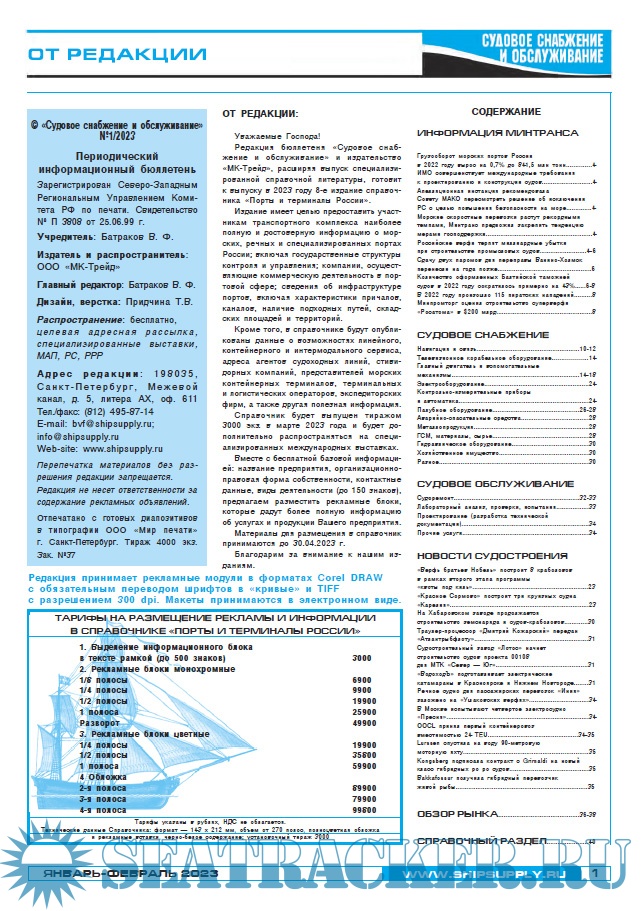 Судовое снабжение и обслуживание март-апрель 2023 - Батраков В.Ф. (главный редактор) [2023, PDF]