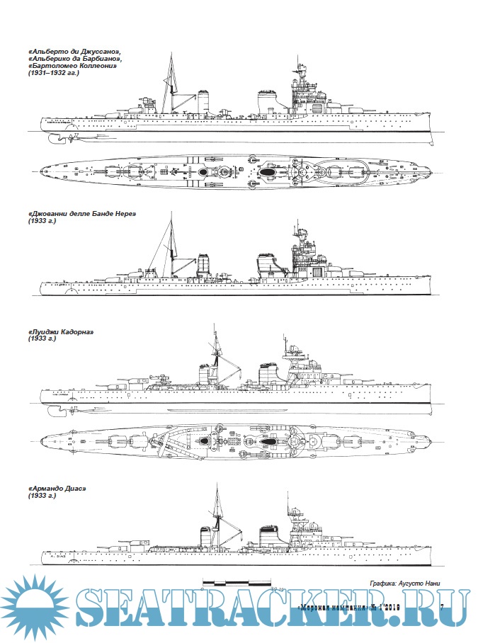 Данная публикация продолжает рассказ об итальянских крейсерах Второй мировой войны, начатых материалами о кораблях типов «Зара» («Морская коллекция» №2-2006), «Тренто» и «Больцано» («Морская кампания» №4-2007), «Монтекукколи» и «Аоста» («Морская кампания» №6-2009), «Капитани Романи» («Морская кампания» №4-2010).