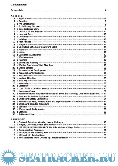 Year: 2023 Language: english / japanese Author: JSU / NUSI / MUI Genre: Other Publisher: All Japan Seaman's Union Format: PDF Quality: OCR with errors Pages count: 75 Description: This IBF JSU/NUSI/MUI-IMMAJ Collective Agreement (hereinafter ‘Agreement’ or ‘CA’) is based on the IBF Framework which sets out the standard terms and conditions applicable only to seafarers serving on any ship owned or operated by a company in membership of IMMAJ, the member of the Joint Negotiating Group in respect of which there is in existence an IBF Special Agreement. Together with the IBF Special Agreement and the IBF Memorandum of Agreement, which may contain additional terms and conditions relevant to seafarers, the IBF Framework CA makes an integral part of the general IBF Settlement negotiated between the International Transport Workers Federation (ITF) and the Joint Negotiating Group of maritime employers (JNG). Additional info: Effective from January 1st 2022 to December 31st 2023. IBF - International Bargaining Forum JSU - All Japan Seamsn's Union IMMAJ - International Mariners Management Association of Japan NUSI - National Union of Seafarers of India MUI - The Maritime Union of India