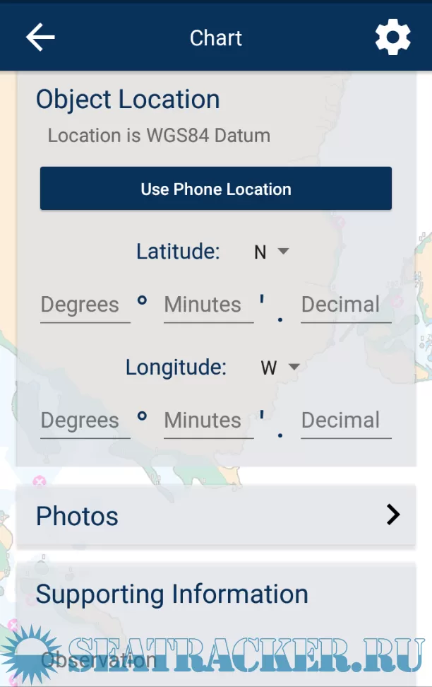 This App presents an alternative way to send hydrographic data by taking advantage of your devices GPS, camera and email software.