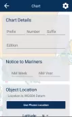 Mariners are asked to use the App to report information affecting ADMIRALTY charts and publication, issues with ENCs from our service, Marine Life information and any other dangers to navigation direct to the UKHO via the App.