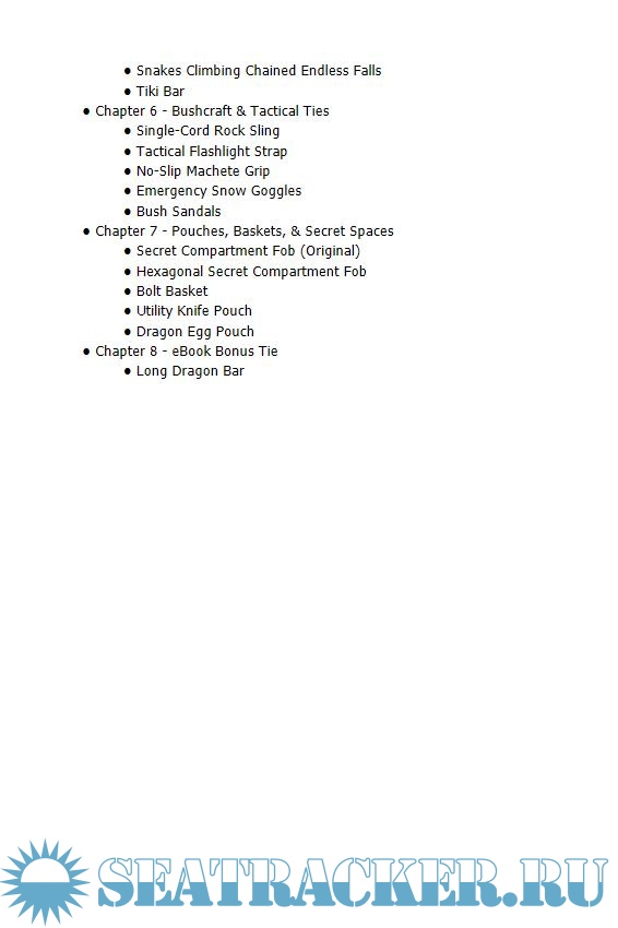 Year: 2013 Language: english Author: Lenzen J.D. Genre: Manual Publisher: 4th Level Indie Edition: 1st ISBN: 0985557834 Format: EPUB Quality: eBook Pages count: 595 Description: Paracord Fusion Ties - Volume 2 (PFT-V2) is the second installment in the paracord fusion ties book series and another stunning achievement by author J.D. Lenzen. Like Paracord Fusion Ties - Volume 1, PFT-V2 reveals innovative and stylish ways of storing paracord for later use. So once again you'll find crisp, clear, full-color photographs (over 950 in all!), coupled with succinctly written, easy to follow step-by-step instructions for bracelets, straps, and key fobs, as well as medallions and other storage ties that will keep your paracord on-hand and ready for deployment. Still PFT-V2 doesn't stop there! It also provides directions for ties and techniques that represent the next level in paracording knowledge--the making of practical paracord objects. Primarily designed to provide survival and/or tactical advantages, practical paracord objects are in themselves useful. That is, they provide benefits to those who tie them, in real time; as opposed to when they're unraveled and the cord within them used. Examples of the practical paracord objects in PFT-V2 include: Bush Sandals, Emergency Snow Goggles, No-Slip Machete Grip, Single-Cord Rock Sling, and more; including pouches, baskets, secret compartment fobs, and tactical ties. Featuring instructions for 35 awe-inspiring paracord designs, PFT-V2 is an epic step forward in the craft of fusion knotting and a must have book for anyone serious about learning paracord ties! Additional info: About the Author J.D. Lenzen is the creator of the highly acclaimed YouTube channel ''Tying It All Together'' and the producer of over 250 instructional videos. He's been formally recognized by the International Guild of Knot Tyers (IGKT) for his contributions to knotting, and is the originator of fusion knotting--the creation of innovative knots and ties through the merging of different knot elements or knotting techniques. He lives and works in San Francisco, California.