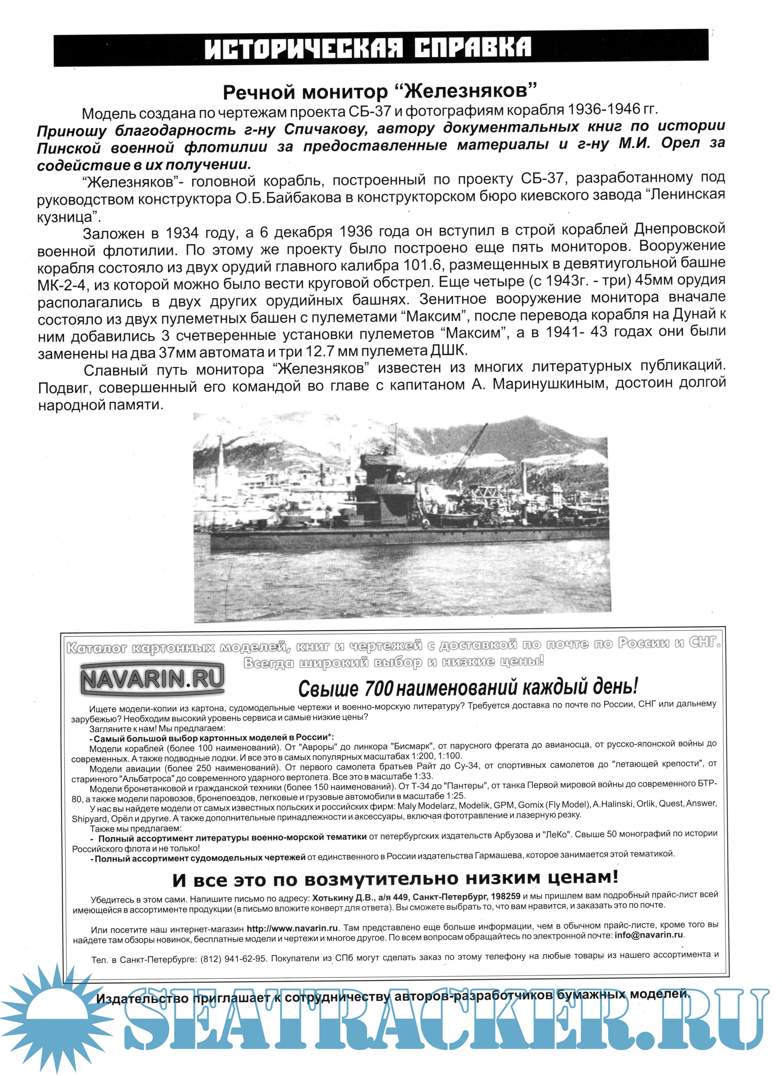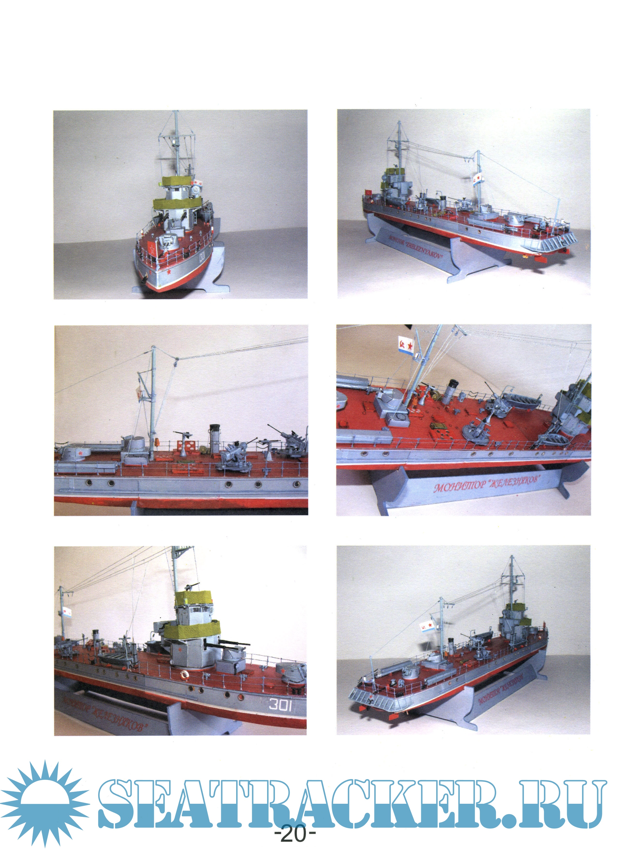 22 листа цветных выкроек и инструкций для создания бумажной модели монитора ЖЕЛЕЗНЯКОВ 1943 год в масштабе 1:100Скриншоты