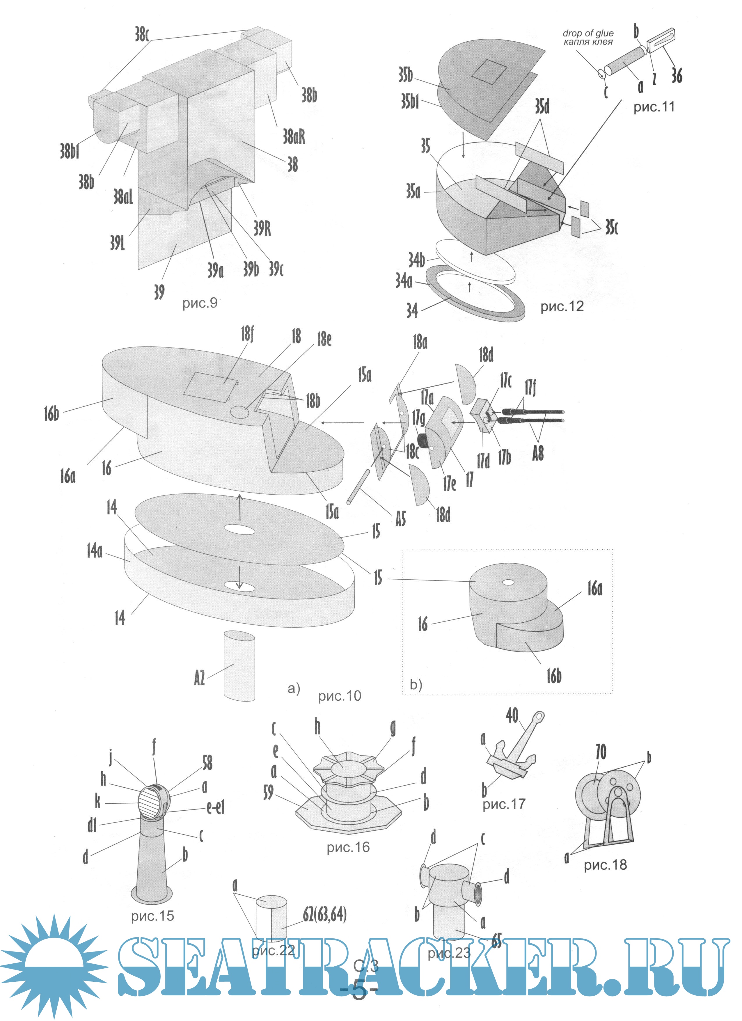 22 листа цветных выкроек и инструкций для создания бумажной модели монитора ЖЕЛЕЗНЯКОВ 1943 год в масштабе 1:100